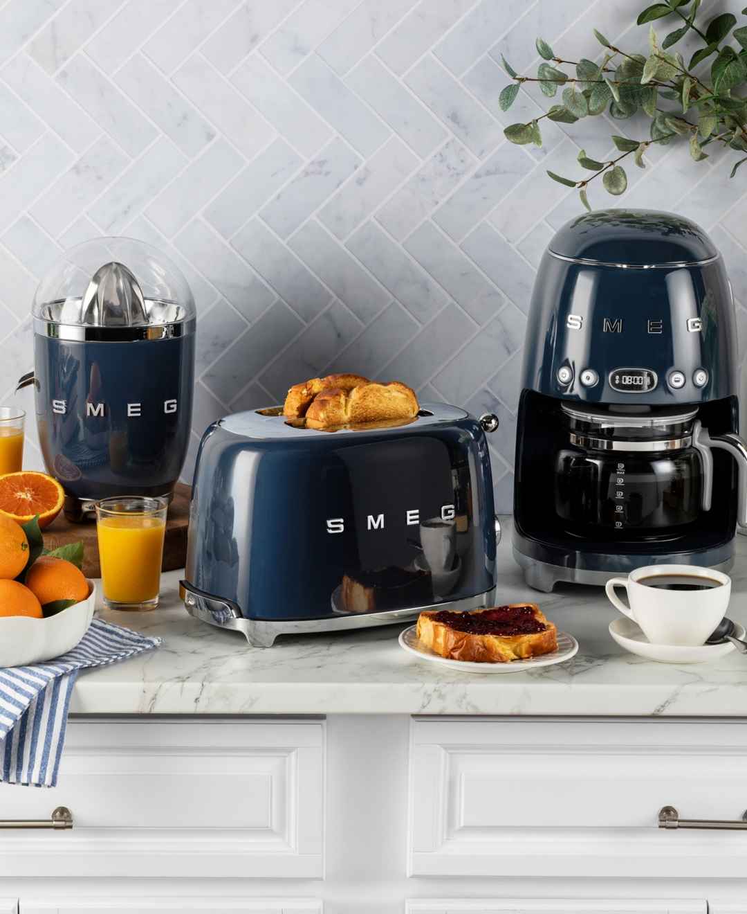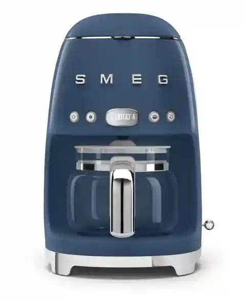 The Smeg Drip Filter Coffee Machine brews up to ten cups of coffee, or smaller quantities with the 4-cup function. Hold coffee at a constant temperature for up to an hour with the Keep Warm function. Switch sounds on or off, and set the time using a 12-hour or 24-hour clock.