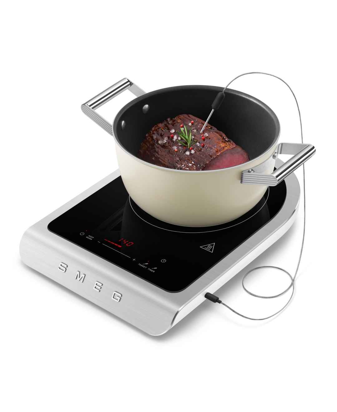 Combining high performance with sleek design, this portable induction cooker from Smeg enables versatile, precision cooking. It offers nine power levels plus a Boost mode and a convenient keep-warm function.