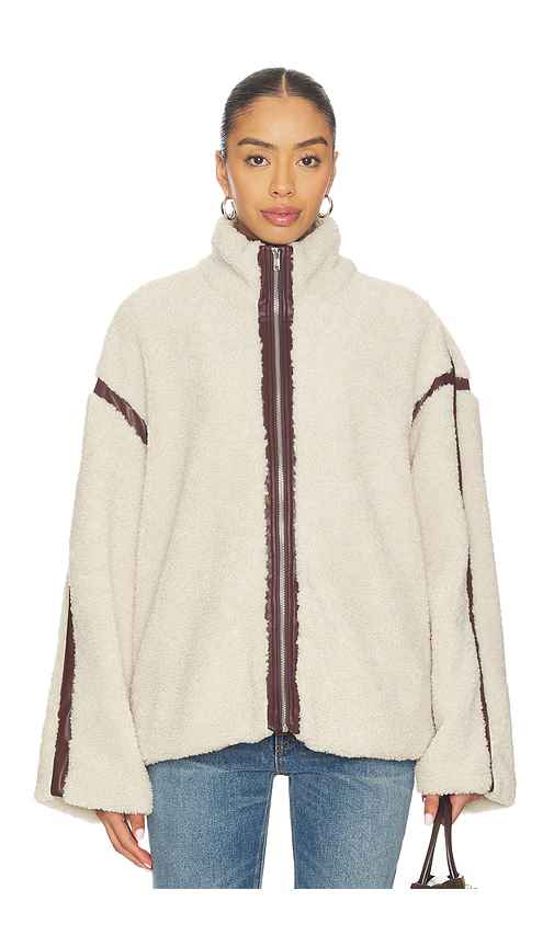 SNDYS Tatum Teddy Contrast Jacket in Beige. - size L (also in M, XL) SNDYS Tatum Teddy Contrast Jacket in Beige. - size L (also in M, XL) Self & Lining: 100% polyester Contrast Fabric: 50% polyester 50% polyurethane. Hand wash. Front zip closure. Side seam pockets. Faux leather trim. Heavyweight she...more