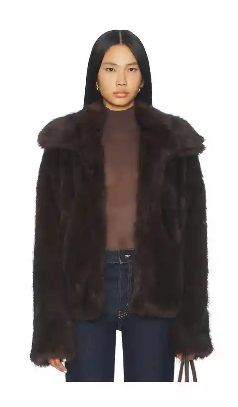 SNDYS Leila Faux Fur Jacket in Chocolate. - size S (also in XS, XXL, XXS) SNDYS Leila Faux Fur Jacket in Chocolate. - size S (also in XS, XXL, XXS) 100% polyester. Made in China. Hand wash only. Pull-on styling. Faux fur. Long extended collar. SDYS-WO51. SFJ125. We want women to feel like they don't...more