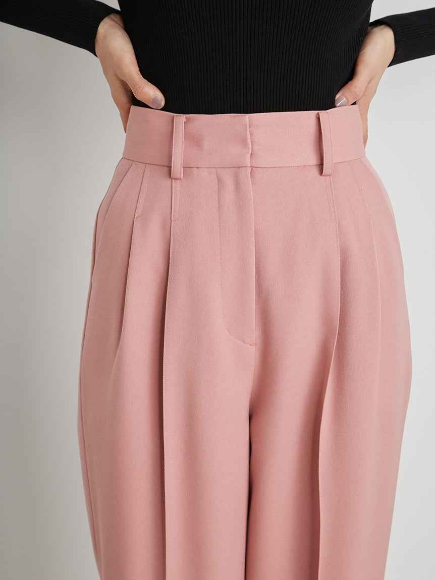 Elevate Your Style with Tapered High Waist Tuck Pants: Trendy Elegance, Redefined! Introducing our Tapered High Waist Tuck Pants, the epitome of trendy elegance for this season. These tuck pants feature a plump silhouette that's on point with the latest fashion trends. Crafted from high-quality brus...more