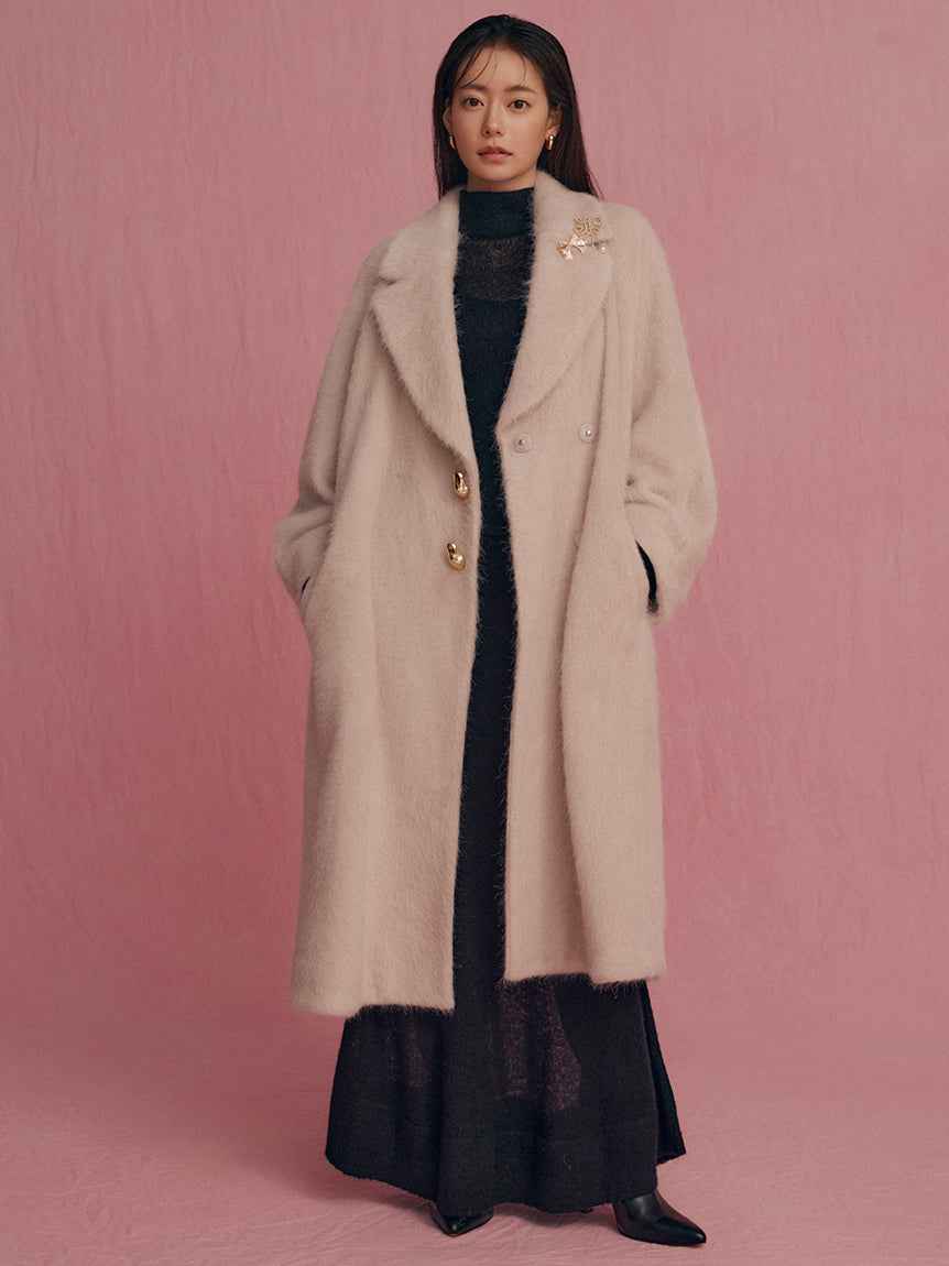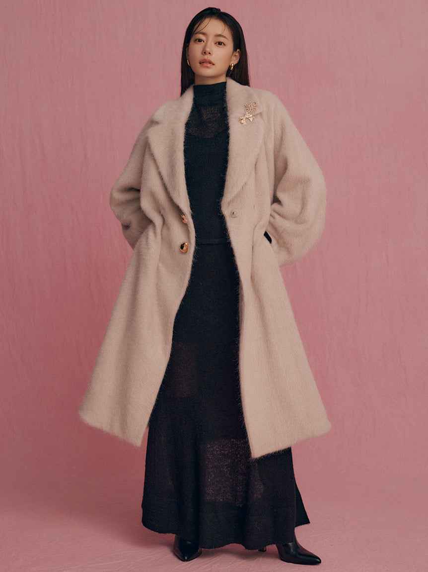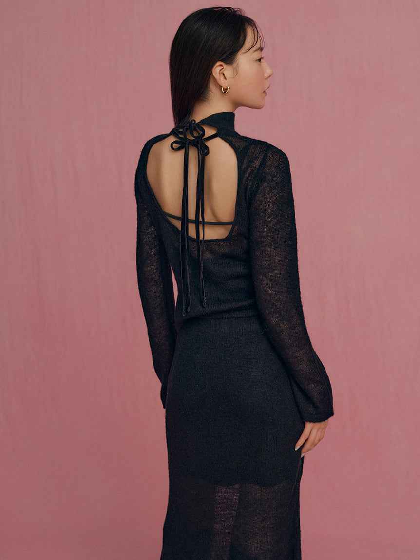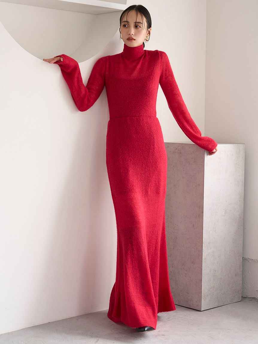 Sheer Knit Mohair Skirt A long knit skirt made of knit fabric that features an elegant mohair brushed texture and a light sheer knit. The inner is short to create a sheer look at the feet, so it can be enjoyed lightly with boots. The simple narrow silhouette makes it easy to balance with tops and is...more