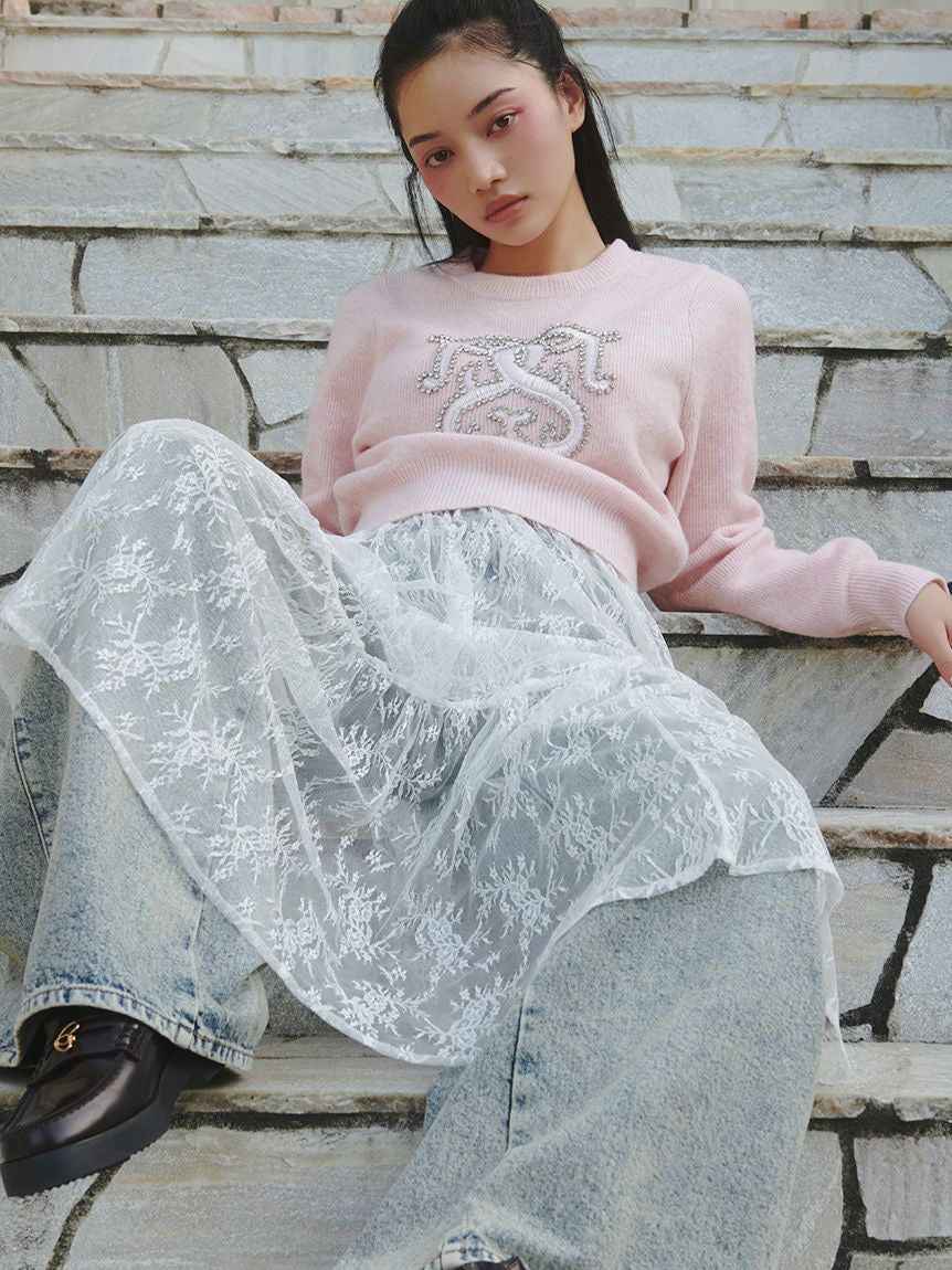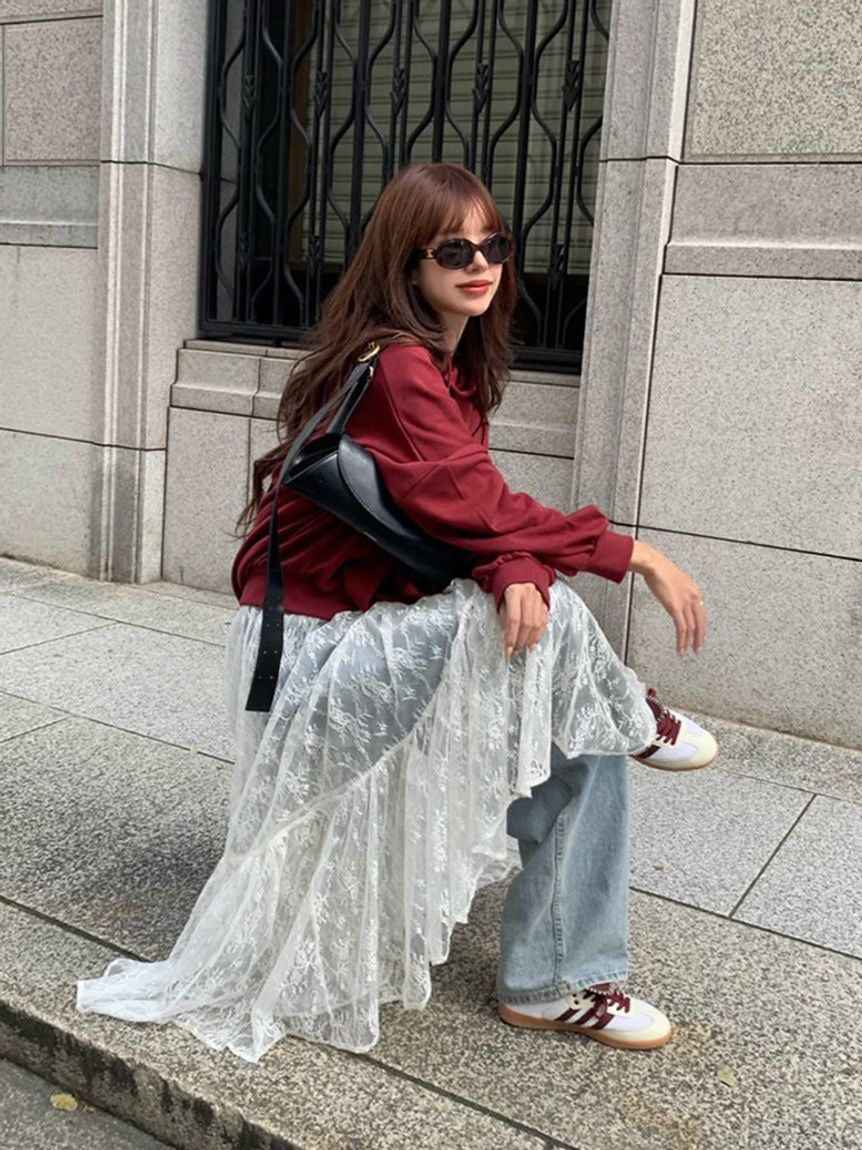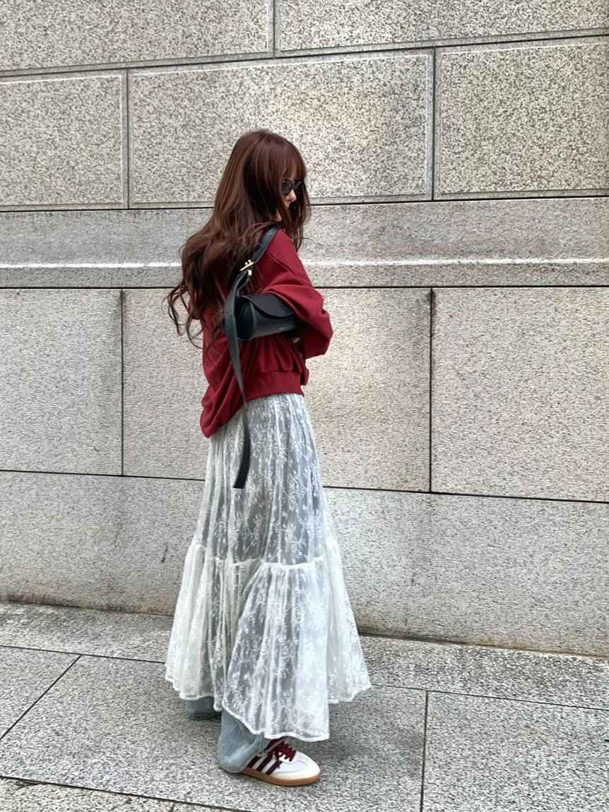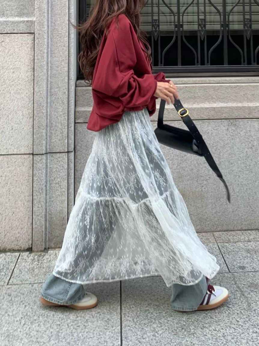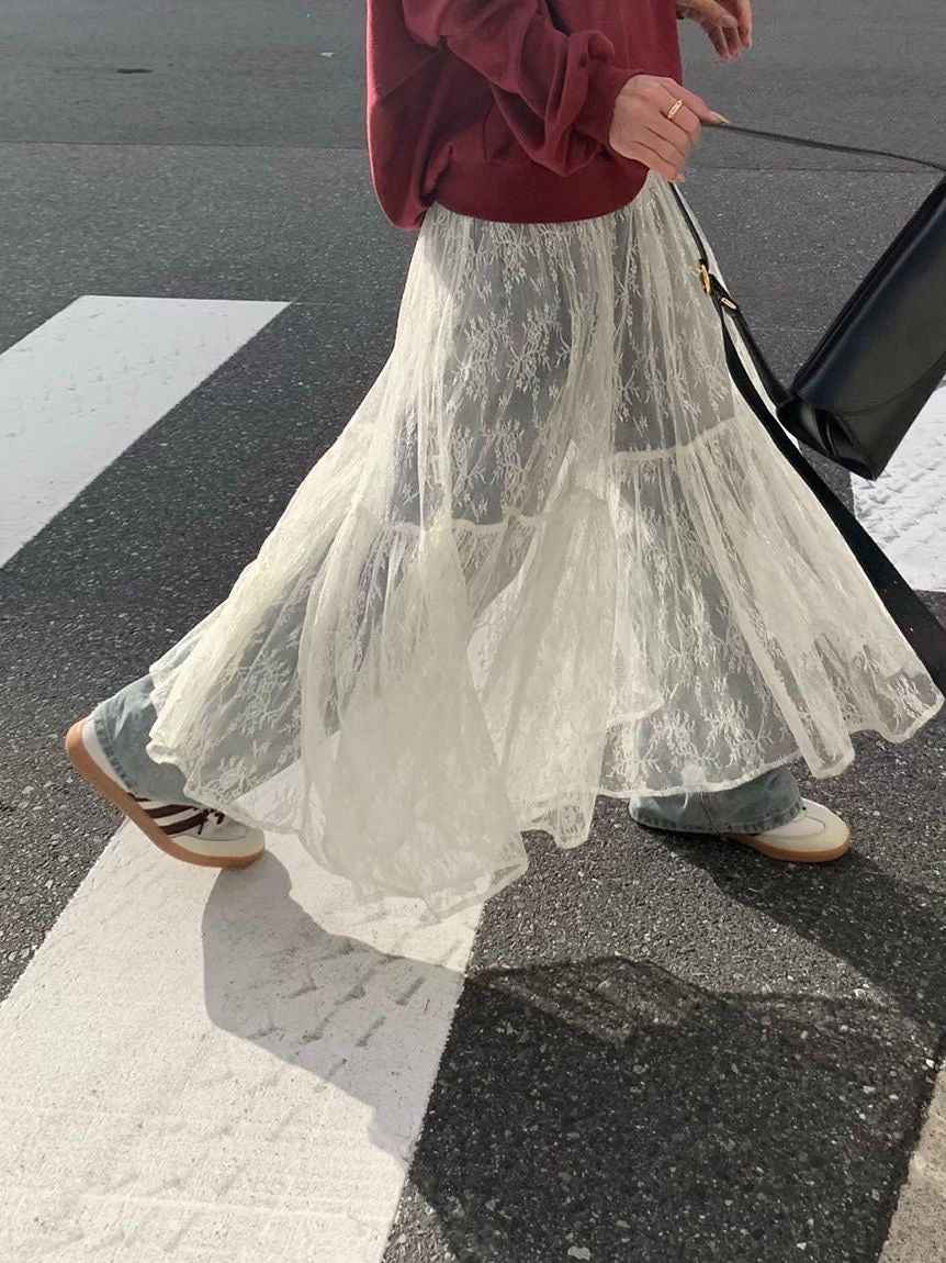 Lace Skirt A lightweight lace skirt that can be worn easily. By setting the lining short, you can enjoy the sheerness to the fullest. We recommend combining it with items made of completely different materials such as knits and fur to create a different look. The inner skirt is removable, so you can...more