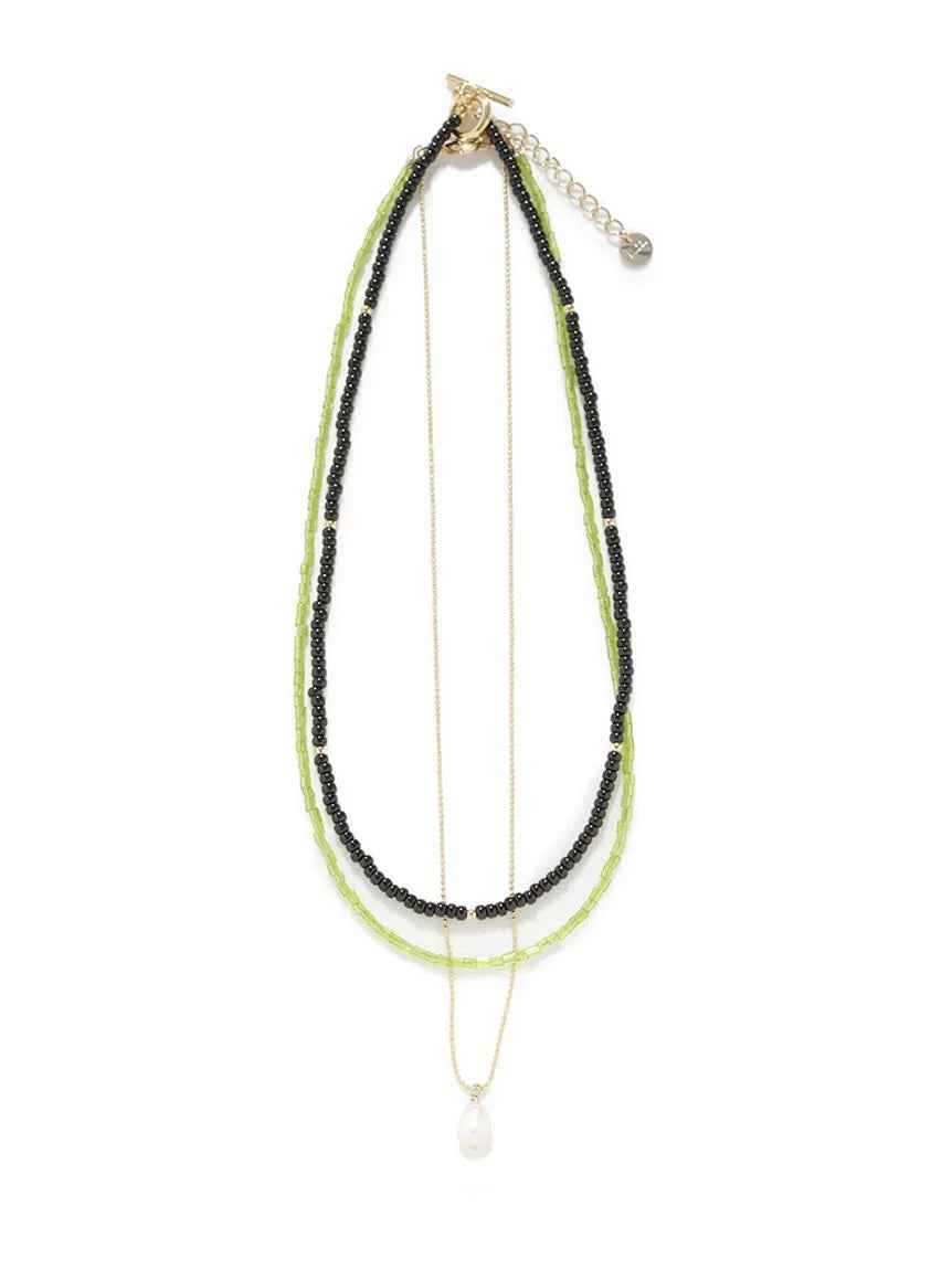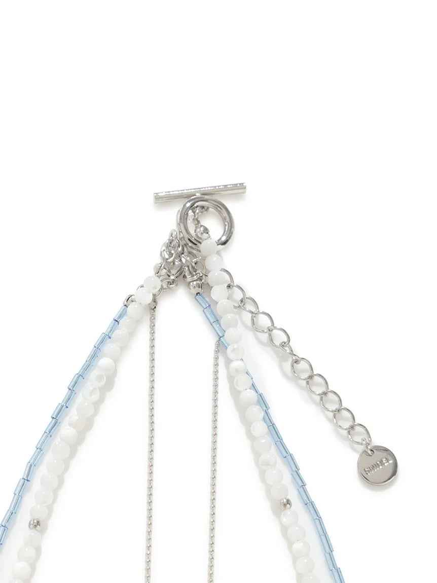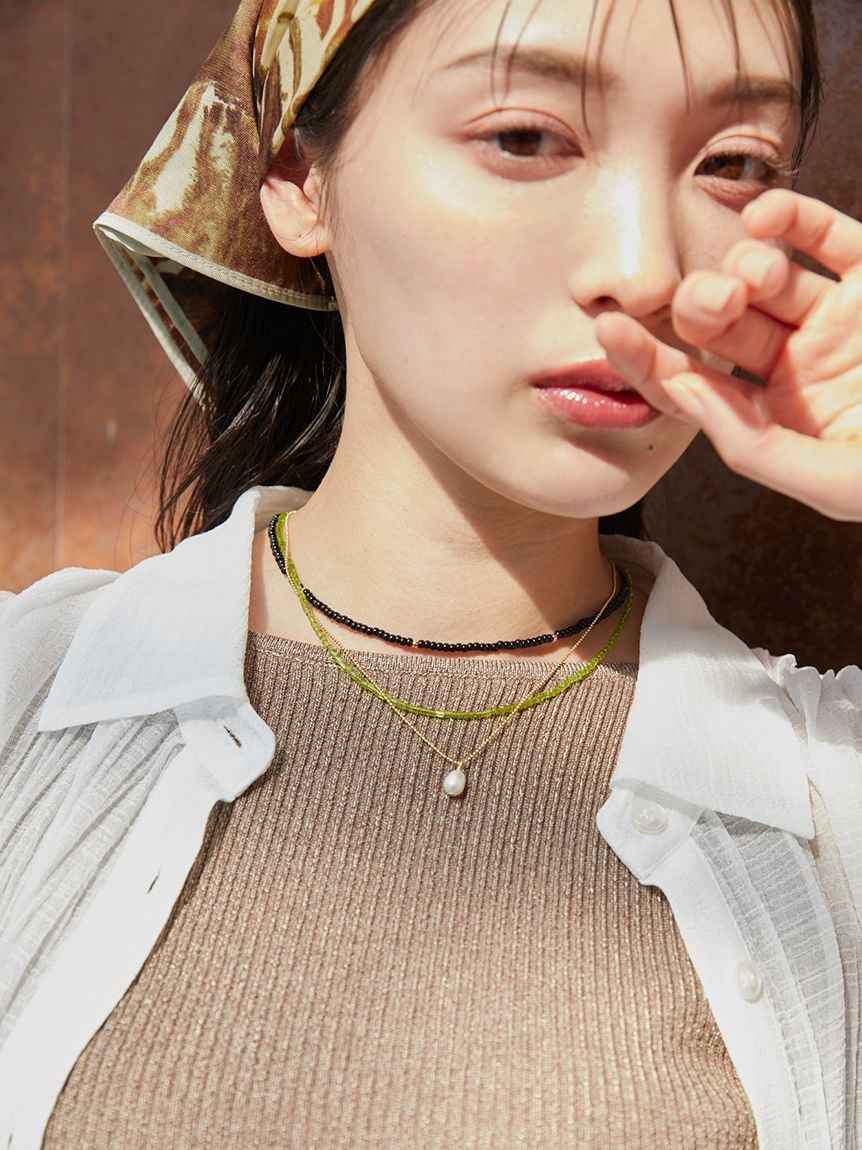 [New layered bead necklace with spring and summer coloring for a special look] [Design/Styling]A delicate yet gorgeous layered bead necklace that combines chains of different designs. A rounded bead necklace, a metal ball chain with pearl beads, and a square bead necklace are layered together to cre...more