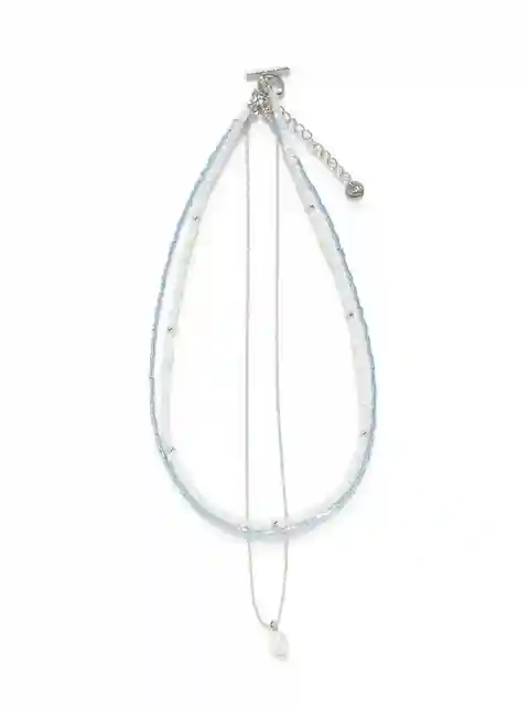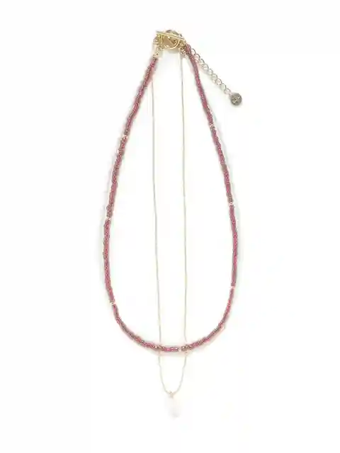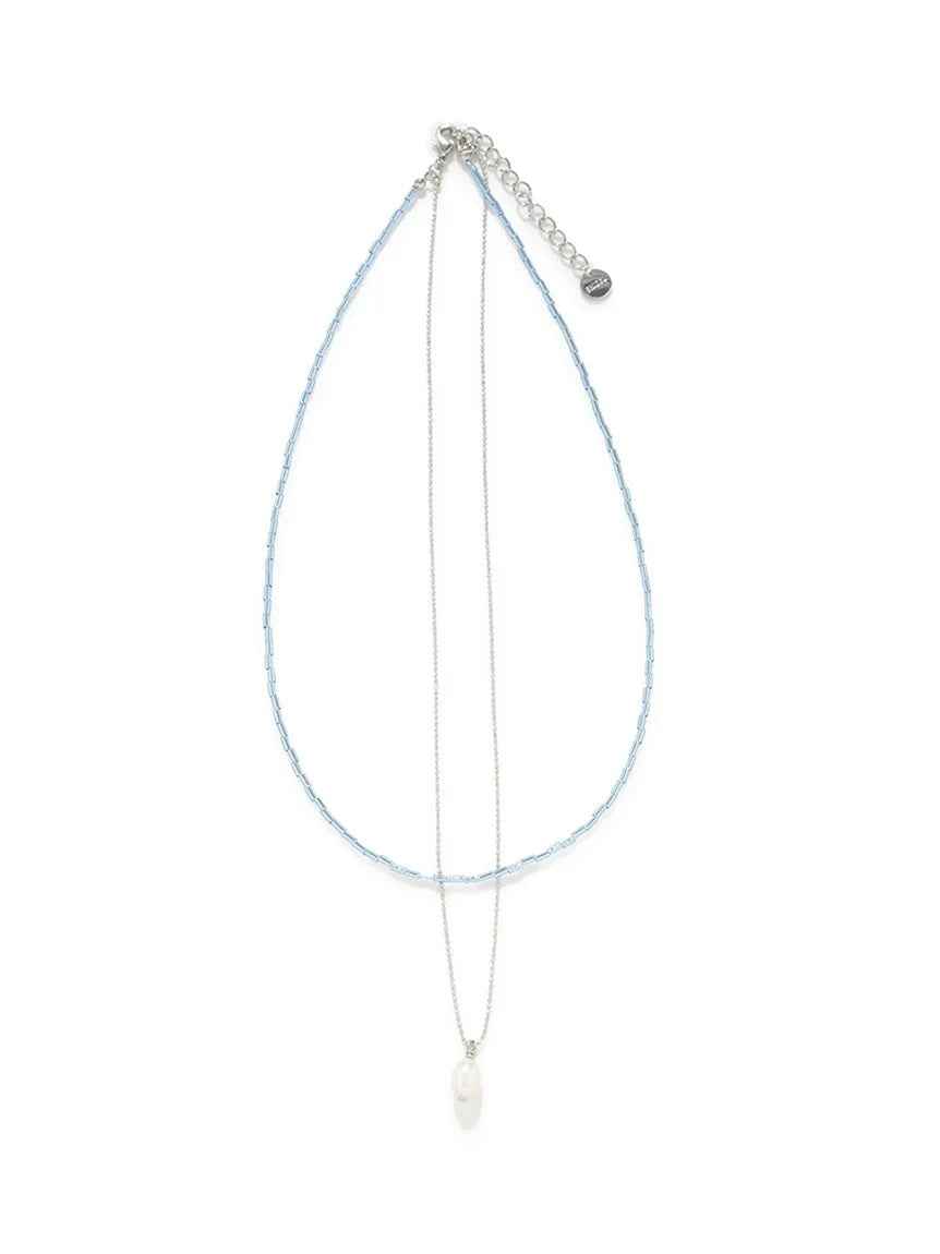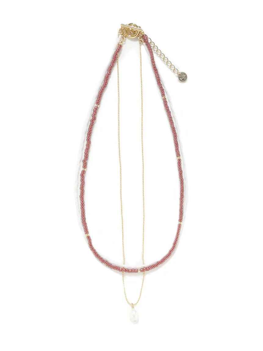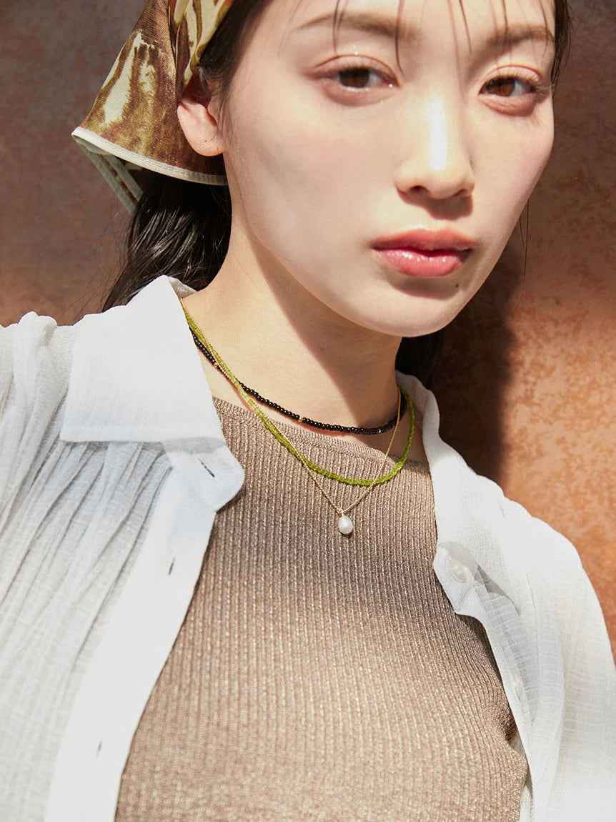 [New layered bead necklace with spring and summer coloring for a special look] [Design/Styling]A delicate yet gorgeous layered bead necklace that combines chains of different designs. A rounded bead necklace, a metal ball chain with pearl beads, and a square bead necklace are layered together to cre...more