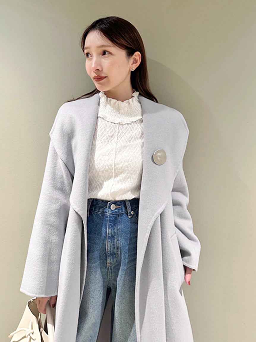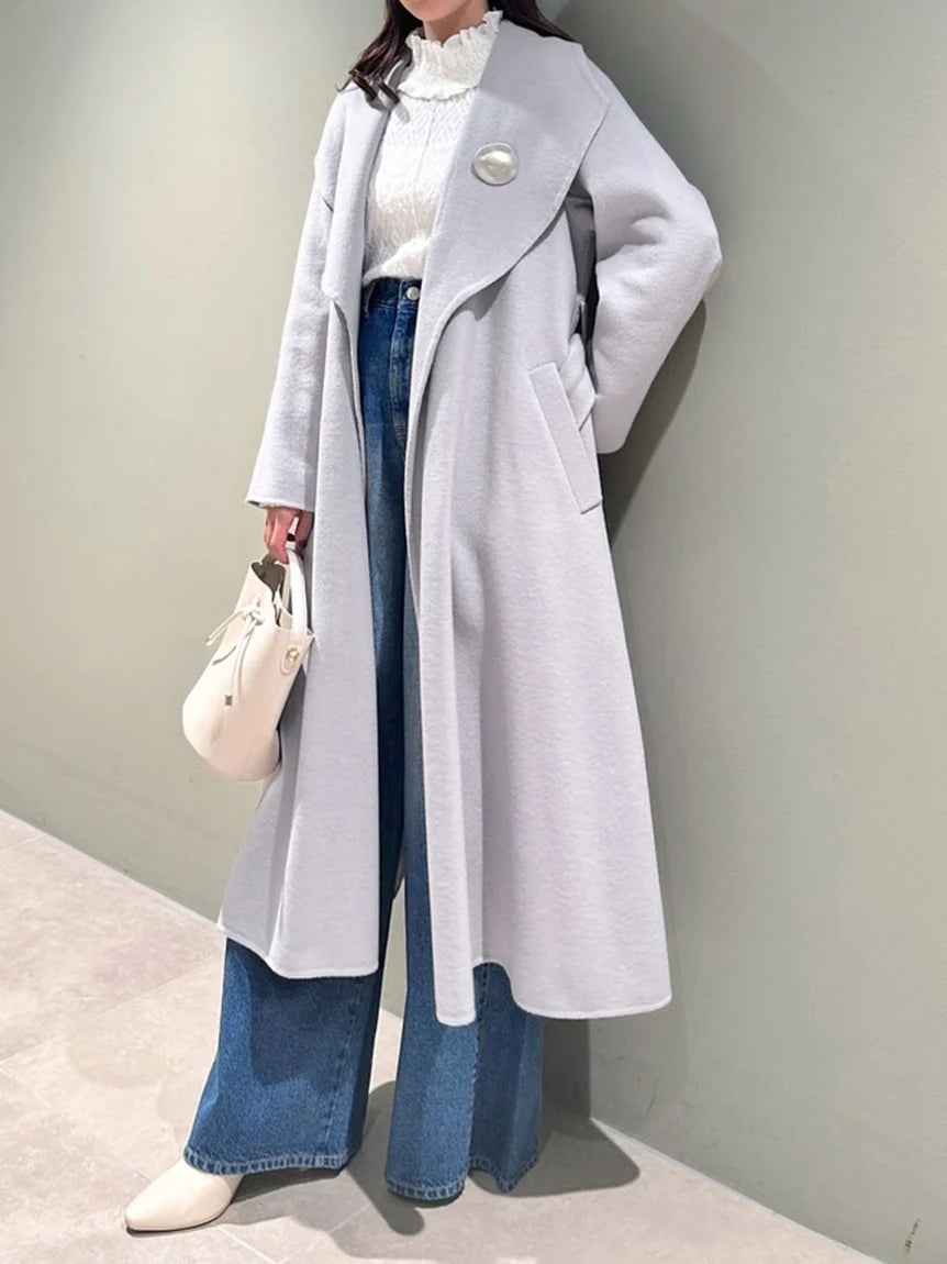 [A coat with a brooch that can be worn smoothly with a reversible tailoring for a ladylike look][Design/Styling]Introducing a light reversible coat that can be worn smoothly until early spring with a reversible tailoring. A brooch with a beautiful glossy nuance is included. The big collar makes an i...more