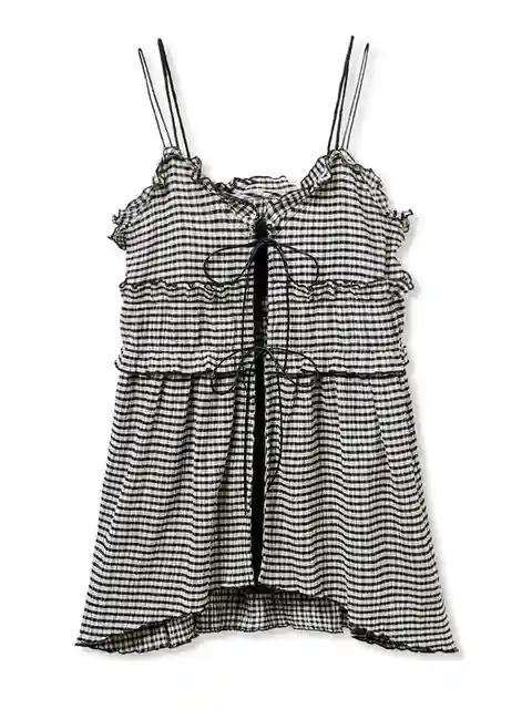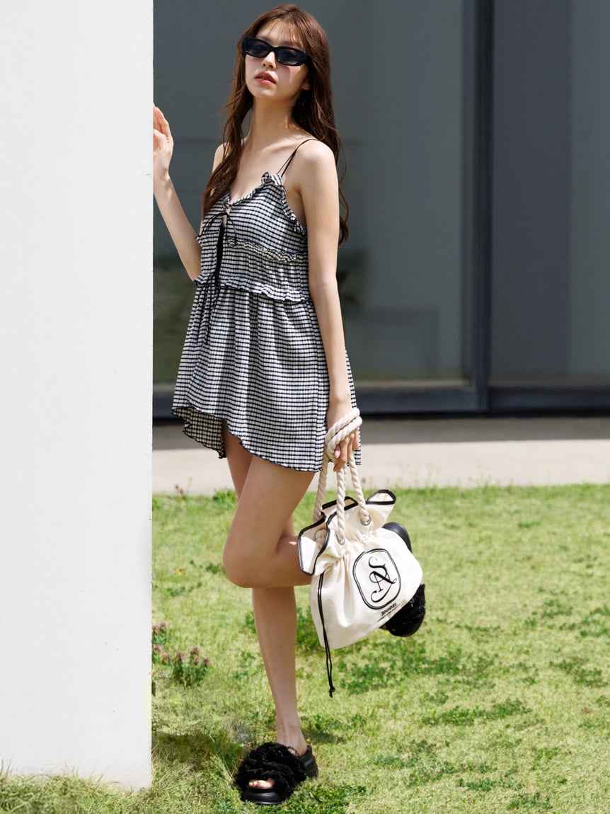 Frill Camisole & Bikini Set - F(ONE SIZE) / CHECK