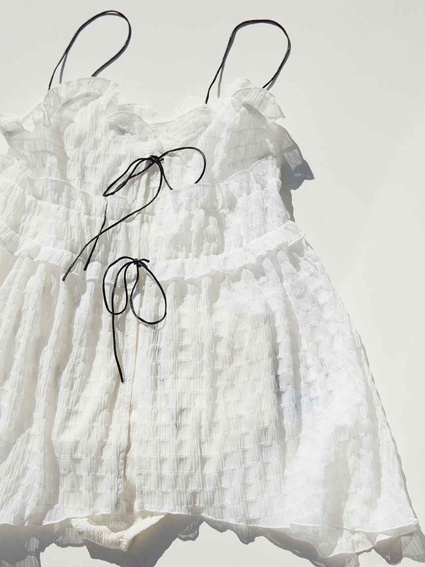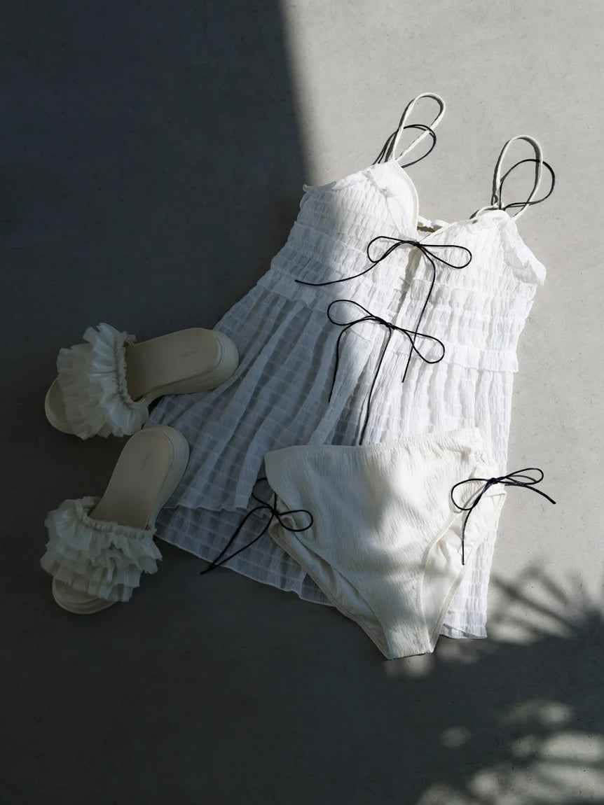 [Last year's popular bikini and frill camisole set is back with new colors, available only on the web] [Design/Styling]A swimwear set of frill camisole and bikini is back, available only on the web. The frill camisole is made of textured fabric, making it easy for adults to wear. Cute frills are inc...more