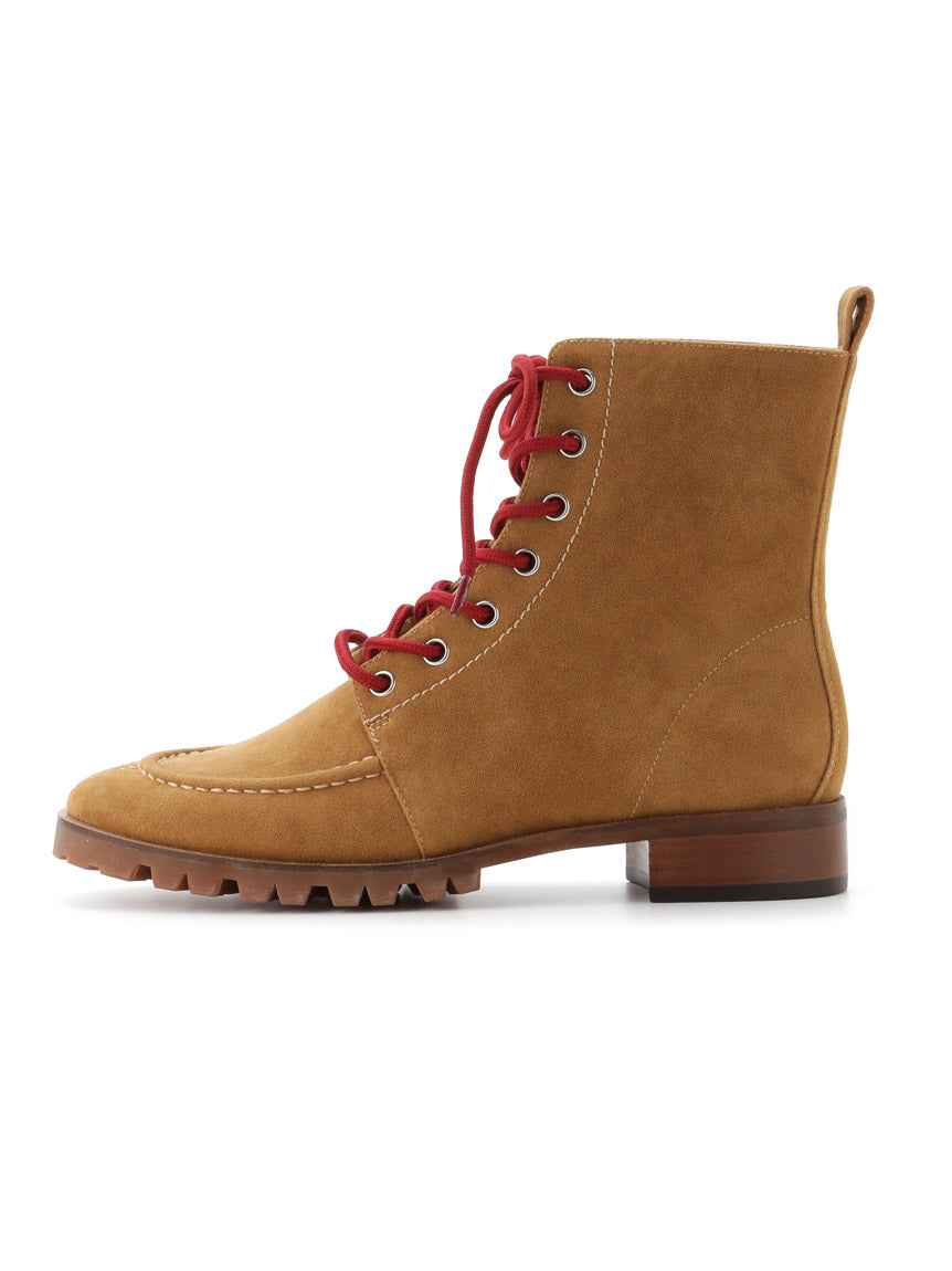 Lace Up Low Heeled Ankle Boots - SMALL / CAMEL