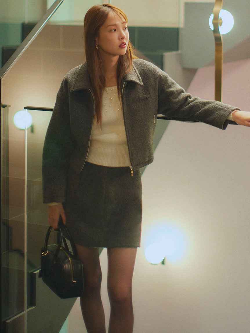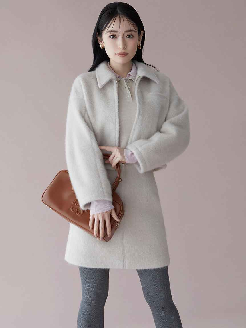 [A box mini skirt shorts with a shaggy texture for a fresh look][Design/Styling]A shaggy box mini skirt with a shaggy texture made from glossy yarn for a soft and gorgeous finish. The plump, thick fabric creates a clean box silhouette that does not pick up the lines of the body, creating a beautiful...more