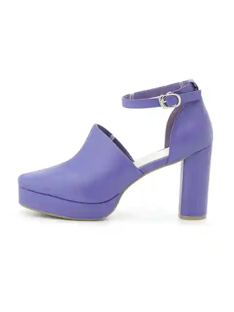 Round Closed Toe Ankle Strap Chunky High Heel Sandals - SMALL / PURPLE