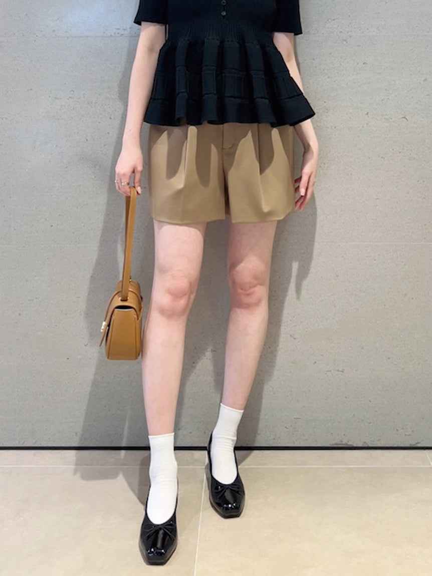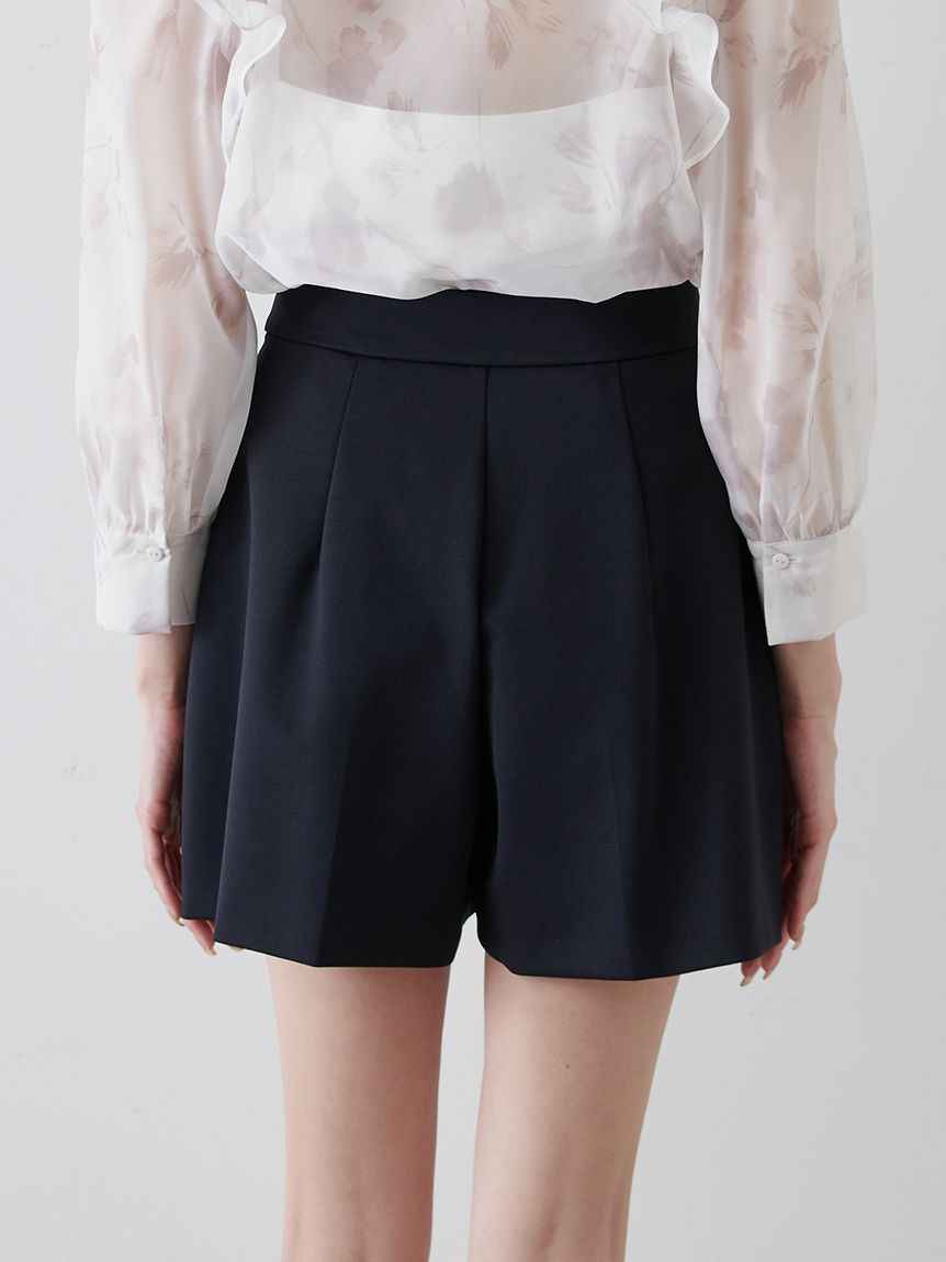 Beautiful shorts with a beautiful leg effect made with a structured three-dimensional form We deliver beautiful shorts that will improve your style by creating a silhouette with a neat waist and a moderate three-dimensional silhouette with switching and tucks. The firmness of the fabric neatly arra...more