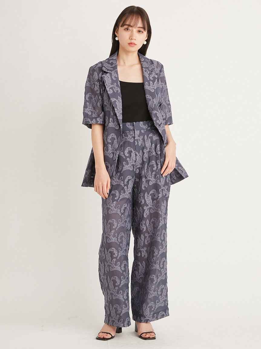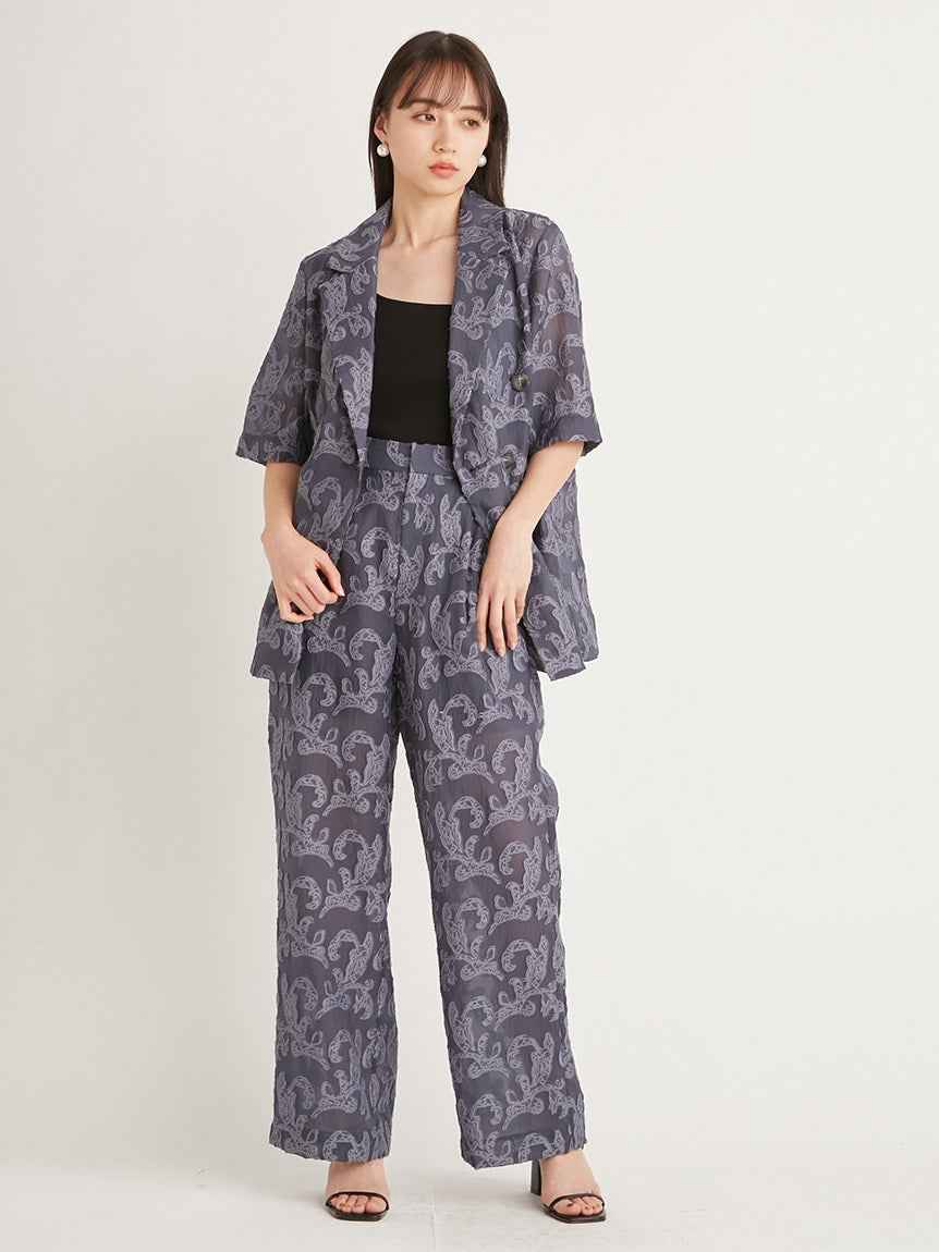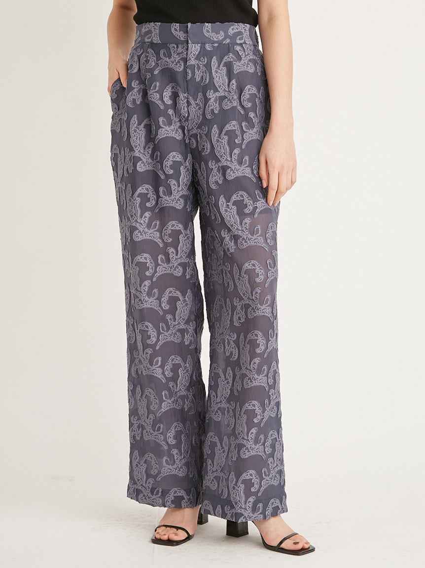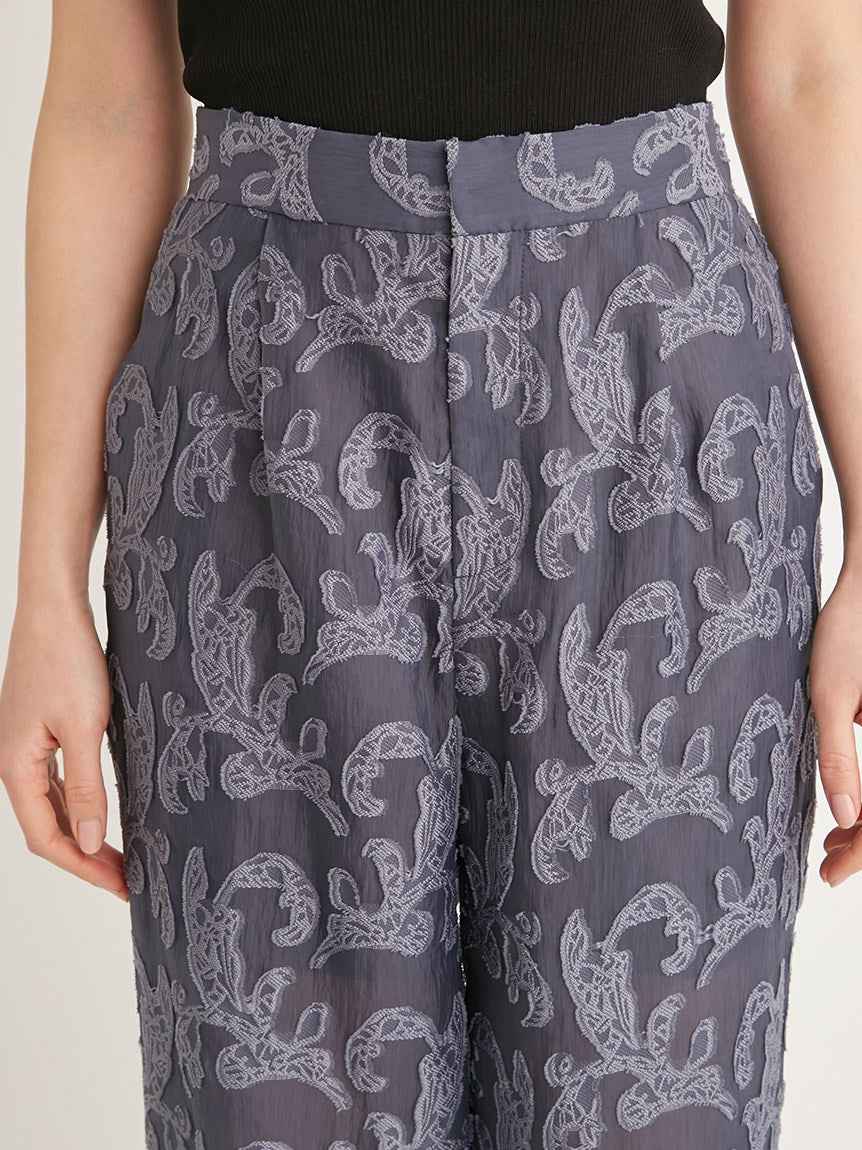 Jacquard High Waist Tuck Pants - 0(SMALL) / GRAY