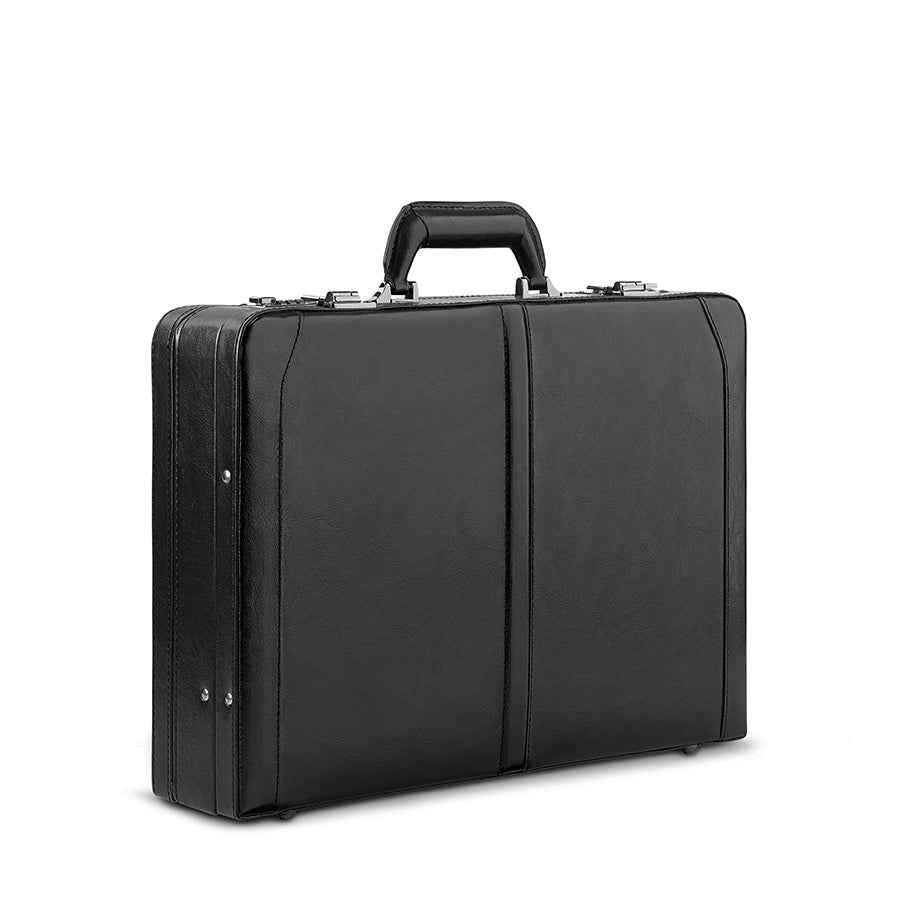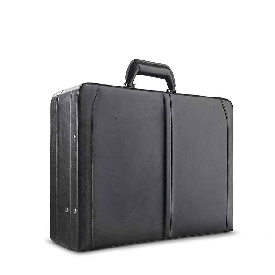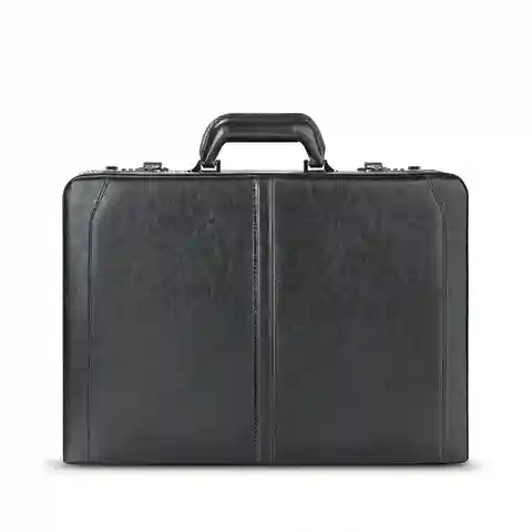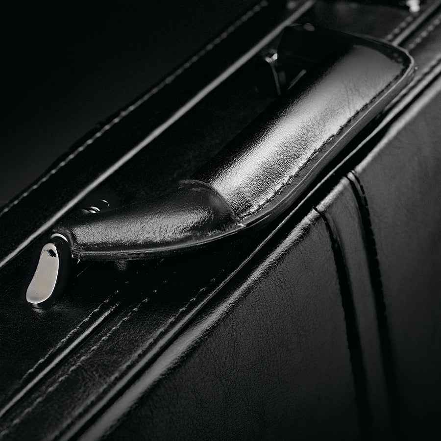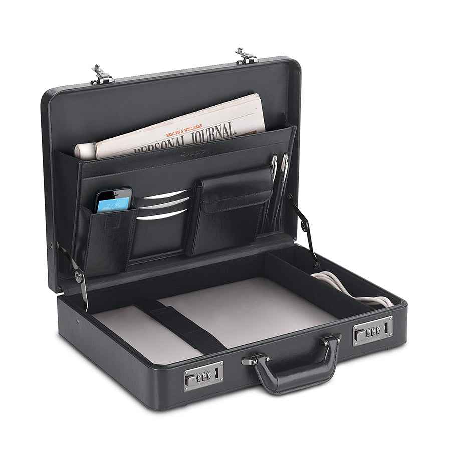 Full-grain leather body 16" laptop compartment with adjustable spacers Interior organizer section File compartment Dual combination locks Sturdy carry handle | Broadway Leather Attach with 16" Laptop Compartment by Solo New York in Black