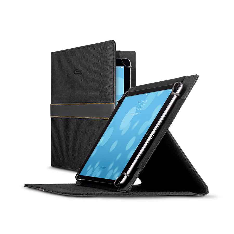 Universal Fit technology gives you the flexibility to use one case for countless brands and models of tablets. Tensioned clips designed to securely hold virtually all brands of 5.5 to 11 inch tablets. Adjust to multiple viewing angles. Magnetic strap ensures booklet stays closed. | Metro Universal T...more