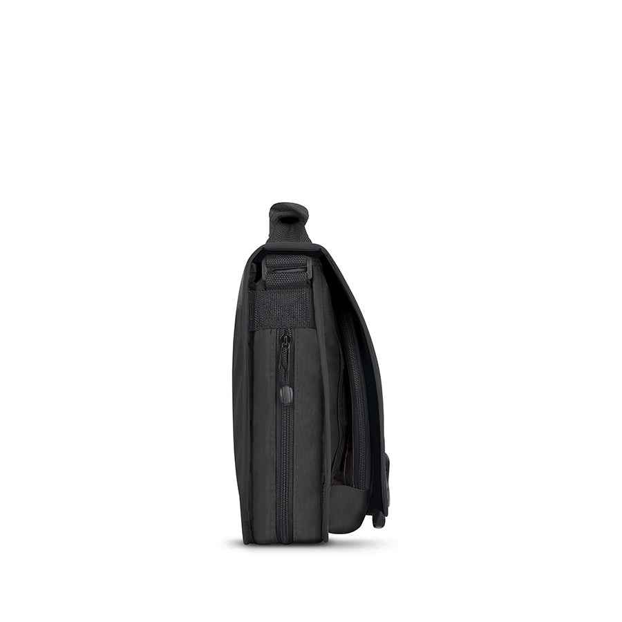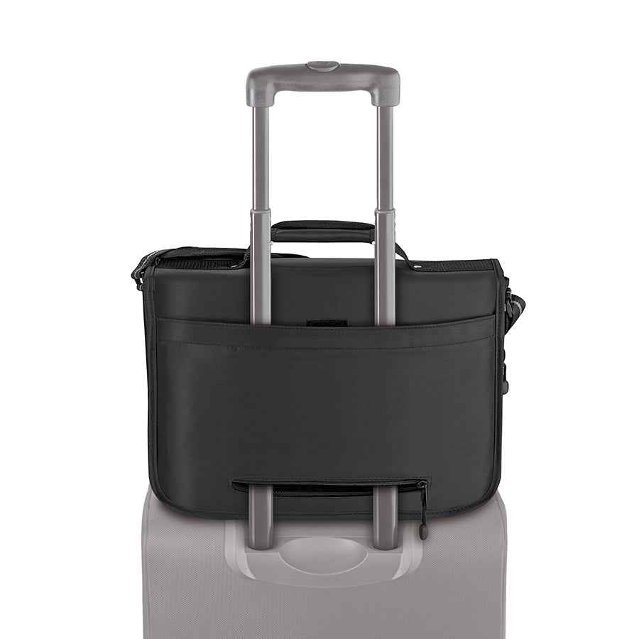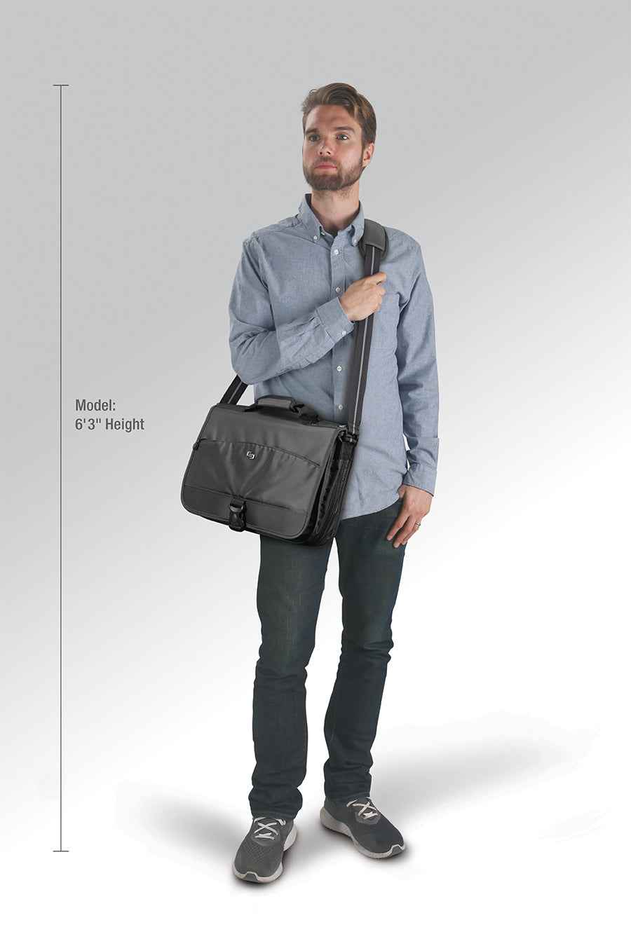 Fully padded 15.6" laptop compartment Main compartment expands 1" to increase storage capacity Full size zip-down organizer section Padded carry handle Adjustable shoulder strap Back pocket slides over luggage handle Rear pocket Speed buckle closure | Conquer Expandable Messenger with 15.6" Laptop C...more
