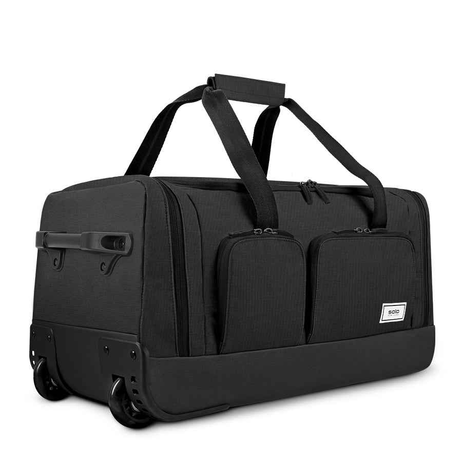 Meets carry-on requirements for most major airlines Two front zippered pockets Separate shoe/laundry compartment Push-button telescoping handle system Easy-glide wheels | Leroy Rolling Duffel with 16" Laptop Compartment by Solo New York in Grey
