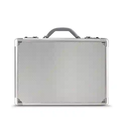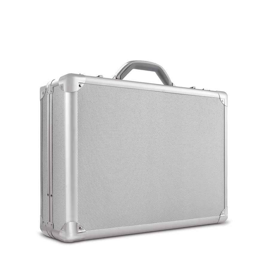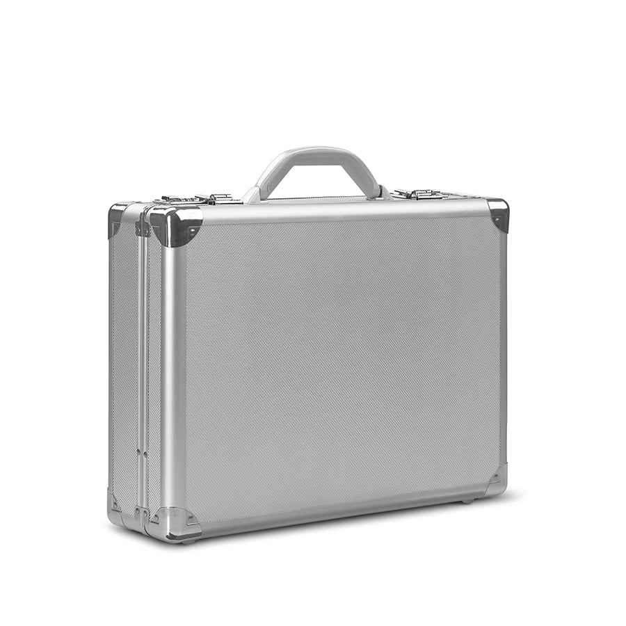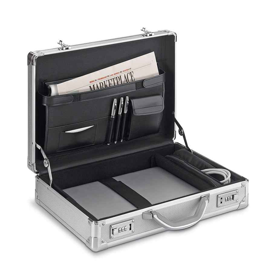 17.3" laptop compartment with adjustable spacers Interior organizer section File compartment Dual combination locks Sturdy carry handle Aluminum body | Fifth Avenue Attach with 17.3" Laptop Compartment by Solo New York in Grey