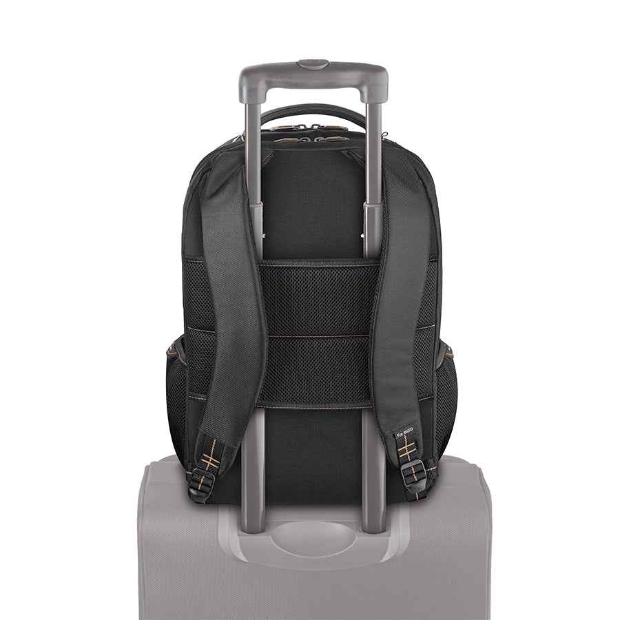 Fully padded 17.3" laptop compartment Internal i Pad/ tablet pocket Quick access pocket Front zip-down organizer section with key clip Expandable open compartment for easy access File compartment Side mesh pockets fits most water bottles Padded carry handle Back panel slides over luggage handle Padd...more