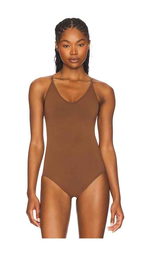 SPANX Sculpt Thong Bodysuit in Chocolate. - size L (also in 1X, M)