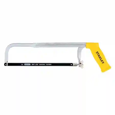 The Stanley adjustable Hacksaw provides efficient cutting power in a durable all-metal frame. Its adjustable frame accepts replacement 10-in. or 12-in. blades and features a tool-free blade change mechanism.