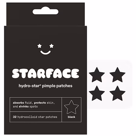 Express yourself and feel cute with Starface Hydro-Star Pimple Patches: a pack of 32 hydrocolloid pimple protectors in black that help absorb fluid, reduce redness, and shrink spots. Perfectly shaped to grip the contours of the face, Hydro-Stars are designed to really stick while caring for your ski...more