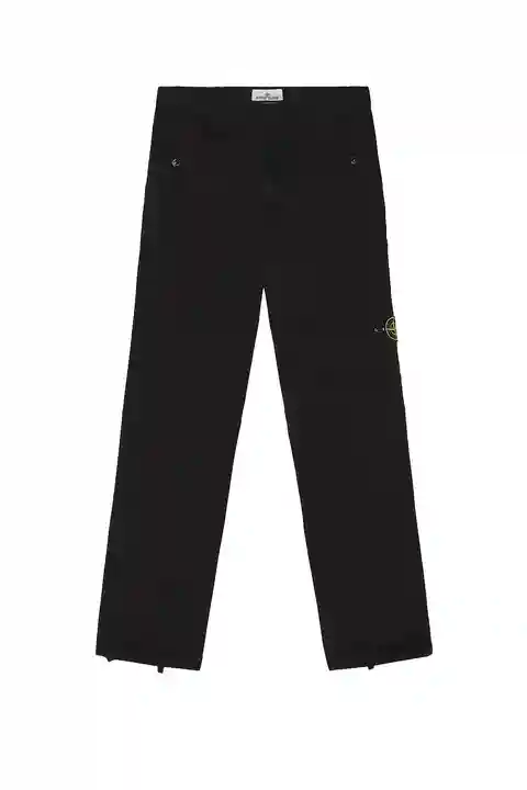 Stone Island Garment Dyed Trousers in Black 98% cotton 2% elastane. Machine wash. Zip fly with button closure. Front button pockets. Back button pocket. Side button pocket with logo patch. Drawstring hem. Midweight twill fabric. STOF-MP53. K2S153100010S0012. About the designer: