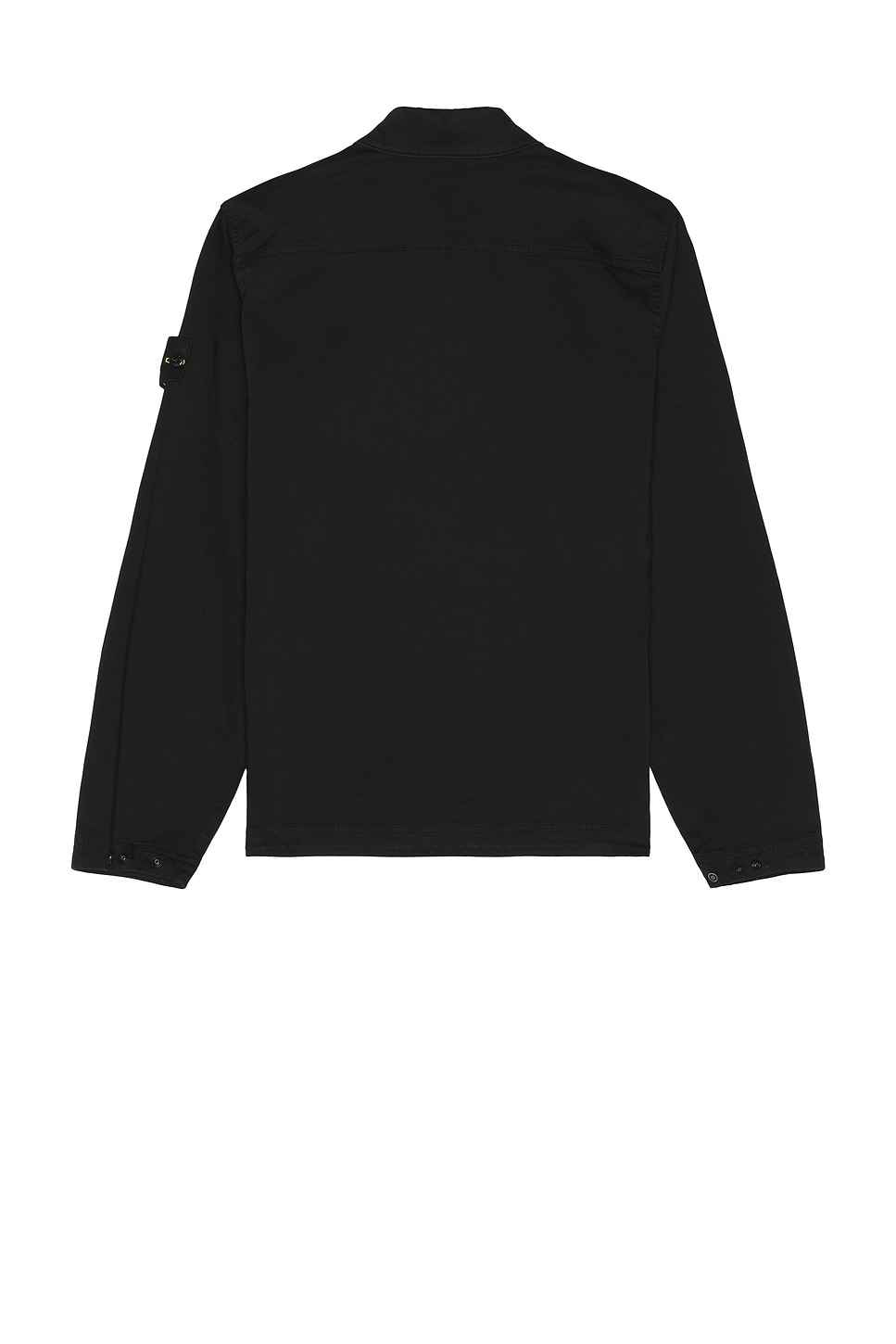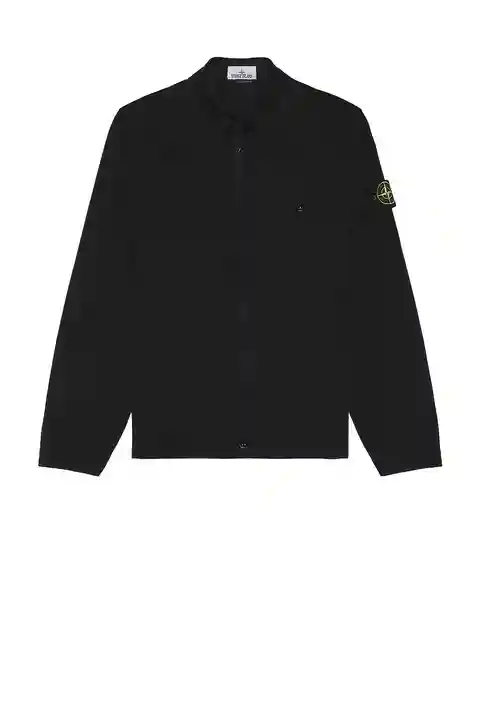 Stone Island Overshirt in Black 98% cotton 2% elastane. Machine wash. Front zip closure. Chest button pocket. Side logo patch. Snap button cuffs. Midweight twill fabric. STOF-MO77. K2S151200006S0012. About the designer: