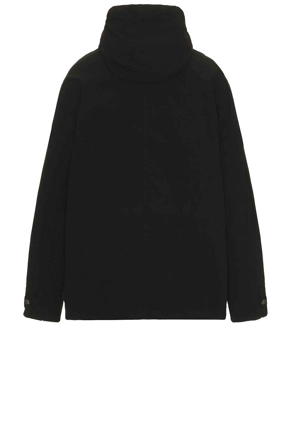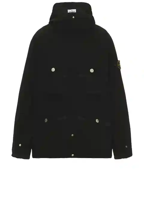 Stone Island Short Parka in Black 64% polyester 36% elastomultiester. Machine wash. Hidden two way front zip closure with button overlay. 4-pocket styling. Detachable logo patch. Snap button cuffs. Attached hood. Midweight gabardine fabric. STOF-MO75. K2S15Q100014S0042. About the designer: