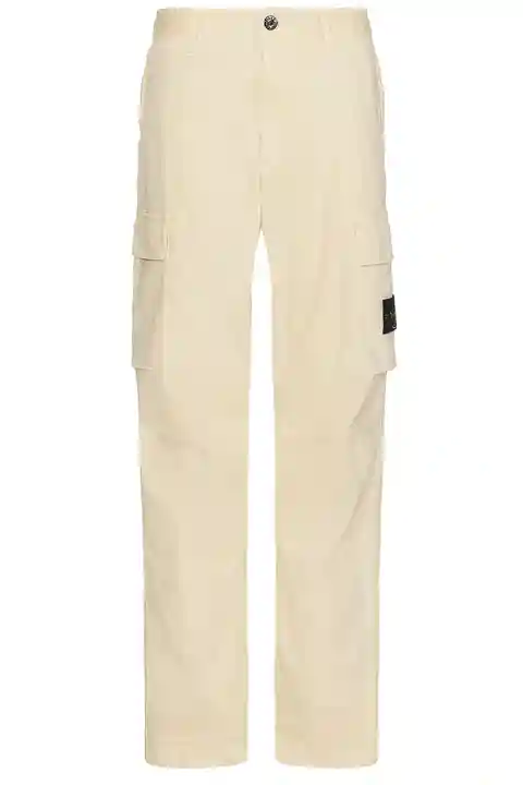 Stone Island Cargo Pant in Beige 98% cotton 2% elastane. Made in Romania. Machine wash. Zip fly with button closure. STOF-MP49. K1S153100304S0004. About the designer: