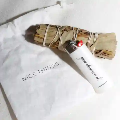 Introducing the Eucalyptus Smudge and Lighter Combo! This powerful duo helps purify your space and freshen your energy. Light up the stylish "You Deserve It" lighter and let the ethically sourced Eucalyptus smudge stick cleanse your space. The Eucalyptus Smudge and Lighter Combo comes perfectly pack...more