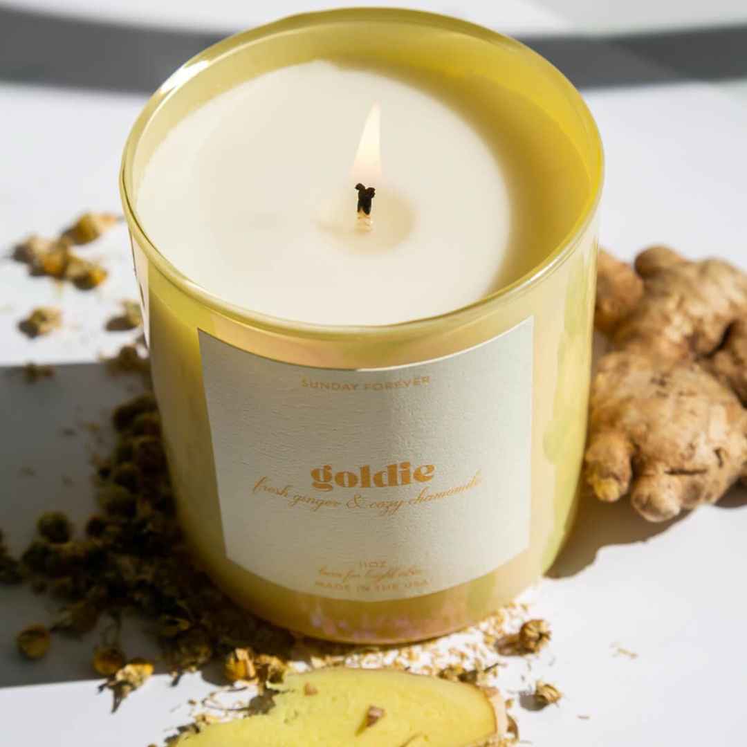 Meet our GOLDIE candle, featuring notes of fresh ginger and chamomile. Indulge in the calming scent of chamomile while enjoying the invigorating properties of ginger, as featured in this high-quality candle. Enhance your relaxation and bring some spa-like comfort to your home with GOLDIE. NOTES: of ...more