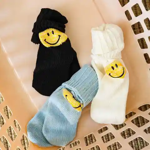 Meet the Happy Luxe Socks the coziest (and CUTEST) socks you'll ever wear, with a happy little surprise on the heel guaranteed to make you smile. These arent just socks; theyre your new cold-weather companion, crafted to keep your feet warm, snug, and SO cute. Made from thick, 100% ribbed cotton tha...more