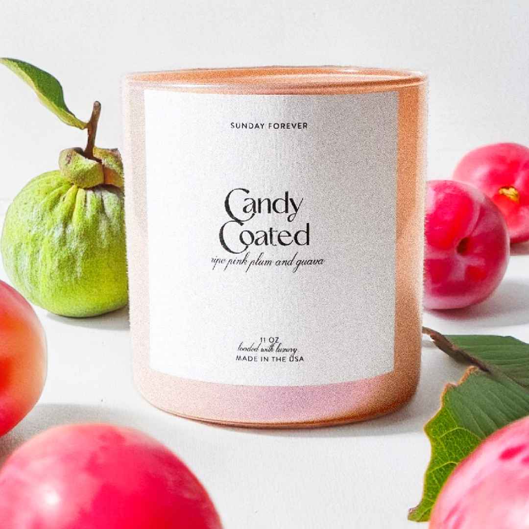 Our Candy Coated candle is our first venture into fruity scents, and it is so good, you'll burn this baby on repeat. But don't be fooled by the nameit's far from overly sweet. Instead, Candy Coated is a unique combination of ripe stone fruit and guava, offering a rich and fruity experience that just...more