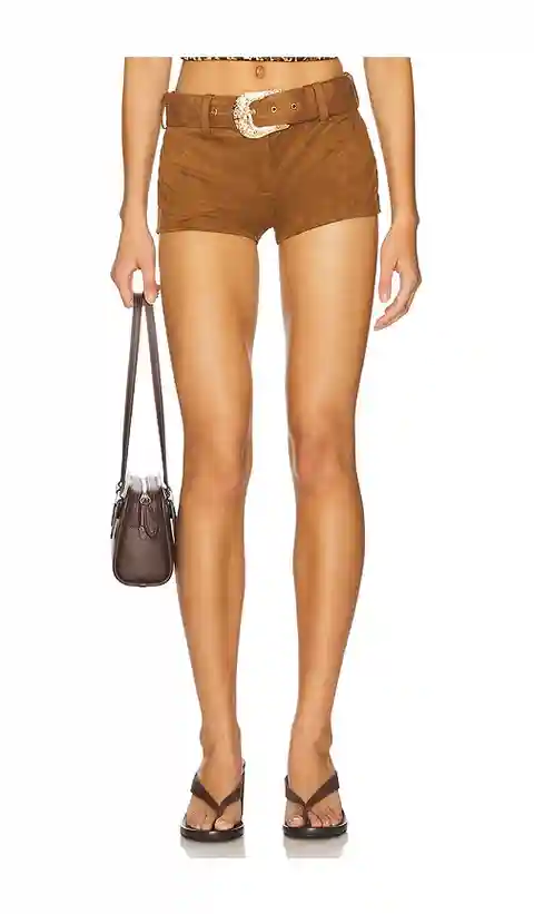 superdown Raddix Short in Brown. - size S (also in M) superdown Raddix Short in Brown. - size S (also in M) 92% polyester 8% elastane. Hand wash cold. Front zipper with hook and bar closure. Detachable belt. Midweight faux suede fabric. Shorts measure approx 9 in length. SPDW-WF268. SDF289 S25. supe...more