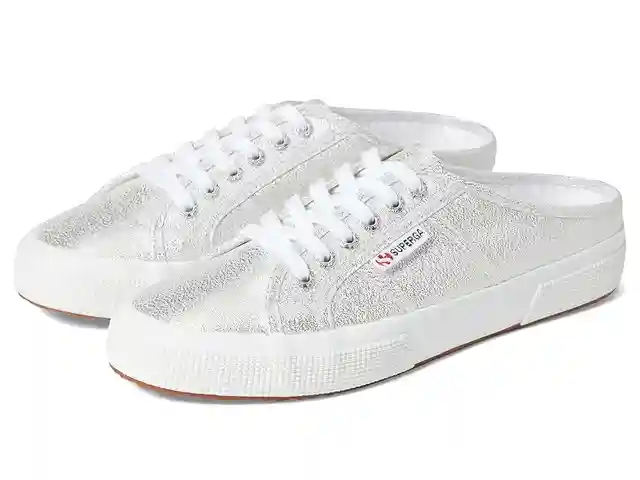 Take every step with absolute comfort wearing Superga 2402 - Mule Lame Shoes. Synthetic upper. Textile lining and insole. Slip-on with lace-up closure. Brand logo on side upper and heel. Round toe. Rubber outsole. Imported. Weight of footwear is based on a single item, not a pair.