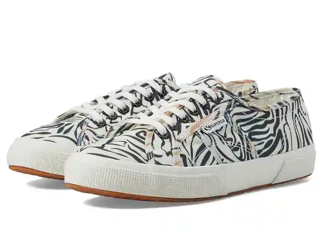 Beautify your fancy look wearing the Superga 2750 Zebra Print. This pair of sneakers is designed with allover iconic print, lace-up closure, and breathable cotton canvas upper. The vulcanized natural rubber outsole offers snuggly vibes. Textile lining and insole. Brand detailing on the heel counter ...more