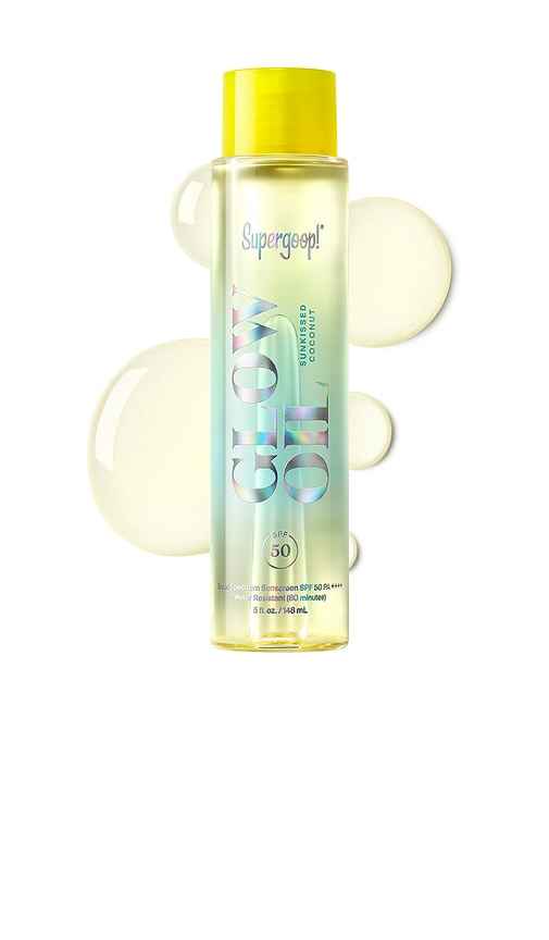 Supergoop! Glow Oil Spf 50 in Sunkissed Coconut. Supergoop! Glow Oil Spf 50 in Sunkissed Coconut. An ultra-nourishing, non-greasy body oil with sun protection that leaves skin with a glowy finish.. Vegan and cruelty-free Free of phthalates, sulfates, parabens, and silicone. Water- & sweat-resistant ...more