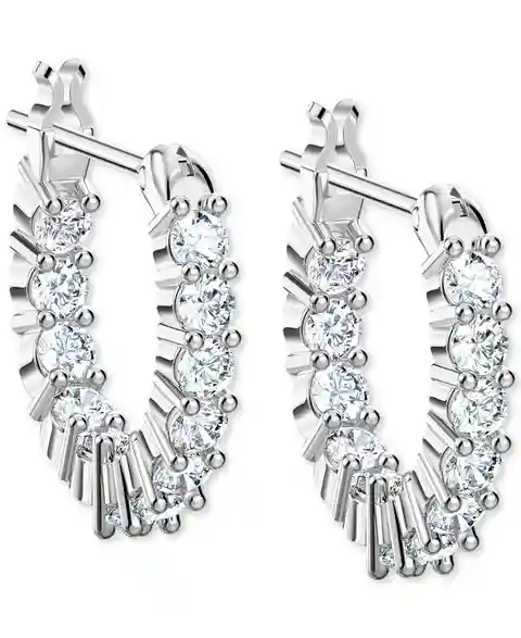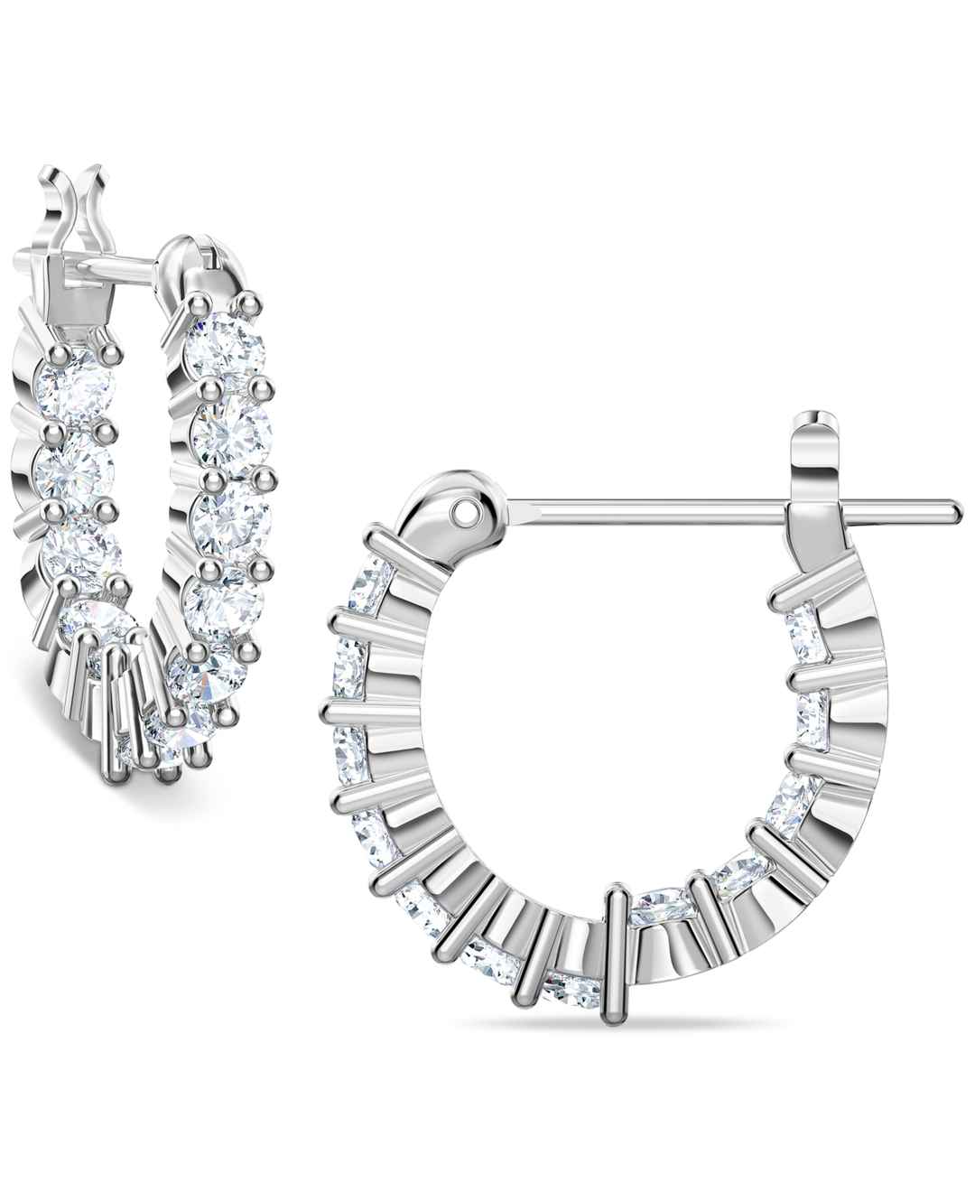 Swarovski Silver-Tone Extra-Small Crystal Hoop Earrings, 0.50" - Silver