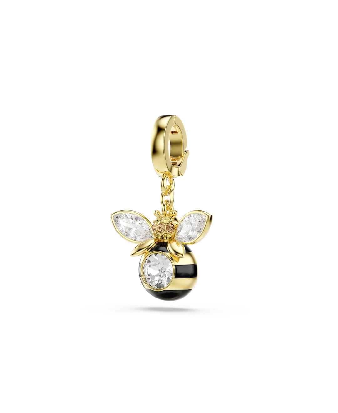 Adding a personal touch to your daily style, this busy bee charm is an ideal choice for those who love nature. Decorated in black and yellow stripes and with wings made of clear crystals, the gold-tone plated creation features a custom-designed clasp, allowing you to wear the charm on various neckla...more