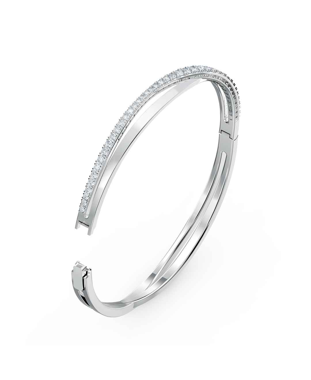 This beautiful bangle by Swarovski exhibits timeless, understated elegance in a modern interpretation of the spiral trend. A brilliant line of sparkling white stones follows the gently curving lines of the bangle, adding glittering radiance to the design.