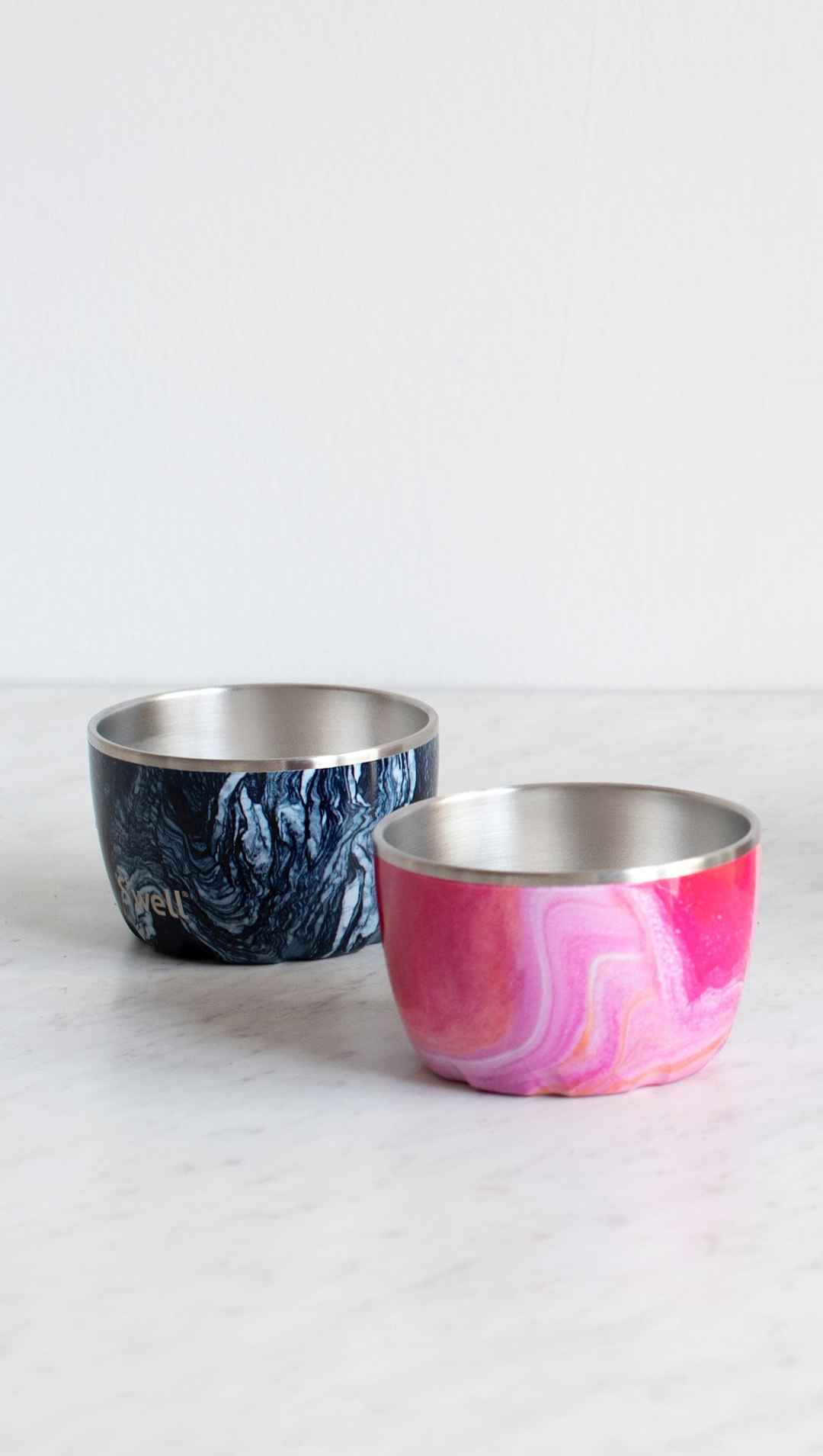 The S'well Bowl features Therma-Swell Technology with vacuum-insulated construction designed to keep ice cream cold, longer. Made of 18/8, food-grade stainless steel. BPA/BPS-free and reusable. Top-rack, dishwasher safe. S'well Rose Agate Bowl | 10oz | Pink | Eco-friendly, Reusable Bowl .
