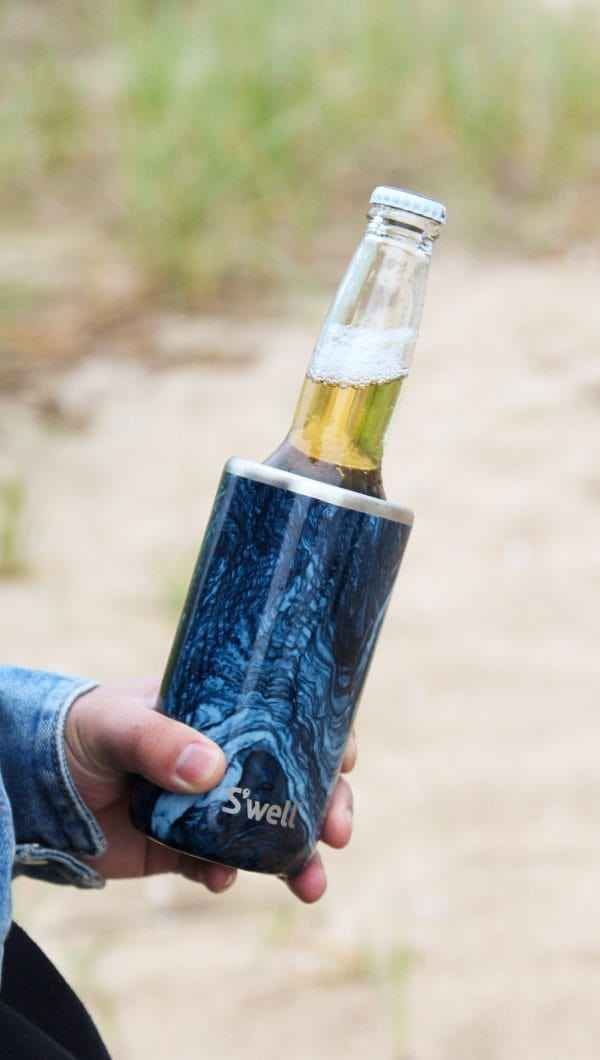 S'well Drink Chillers feature Therma-S'well Technology and triple-layered, vacuum-insulated construction, designed to keep beverages cold for up to 6 hours. Made from 18/8, food-grade stainless steel with superior construction. Top-rack, dishwasher safe. S'well Slim Azurite Marble Drink Chiller | Ba...more