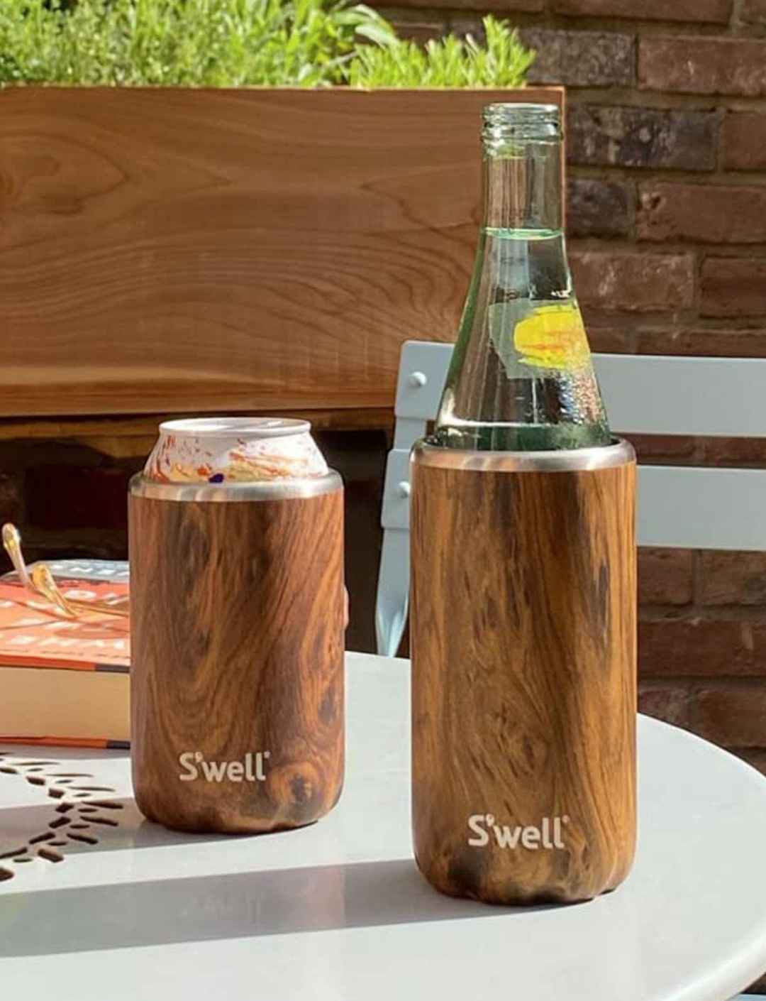 S'well Drink Chillers feature Therma-S'well Technology and triple-layered, vacuum-insulated construction, designed to keep beverages cold for up to 6 hours. Made from 18/8, food-grade stainless steel with superior construction. Top-rack, dishwasher safe. S'well Slim Teakwood Drink Chiller | Barware ...more