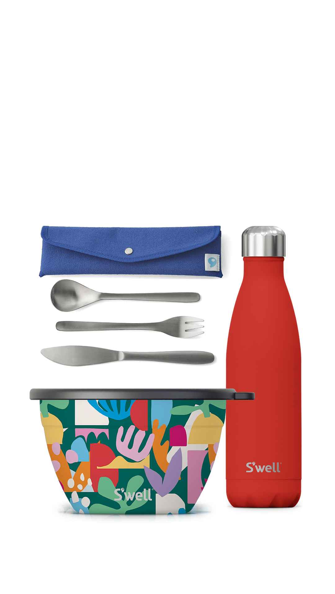 Take your greens to go with the Lunch On The Go Set. Build your favorite salad and toppings in the Salad Bowl Kit, enjoy with the Cutlery Set, then hydrate with our 17oz Bottle! S'well Botanical Brights Lunch On The Go Set | Multicolor | Eco-friendly, Reusable Set .