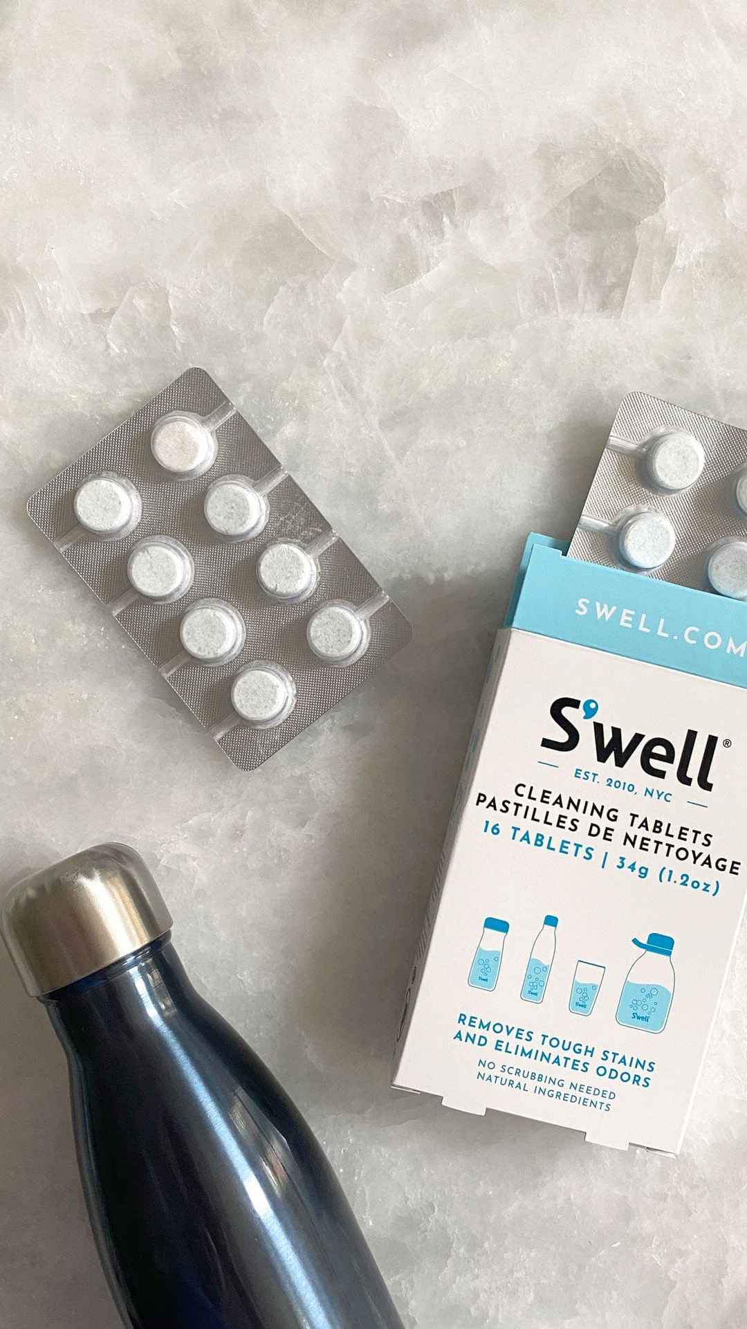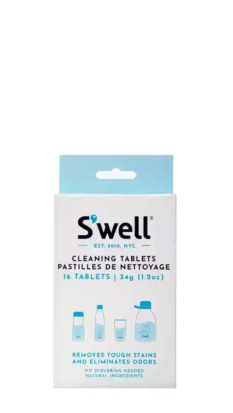 Swell Cleaning Tablets clean tough stains and odors from your Swell in less than 30 minutes with powerful effervescent bubbles. No scrubbing needed Safe, natural, biodegradable ingredients derived from plants and mineral Chlorine and phosphate-free16 tablets included S'well Cleaning Tablets | Eco-fr...more