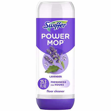 Mop smarter with the Swiffer PowerMop, an all-in-one mopping system that gives you a mop and bucket clean in half the time*. The pre-mixed solution breaks down tough, sticky messes and dries fast - no need to rinse! Enjoy the lavender scent of PowerMop solution as it fills your home with freshness f...more