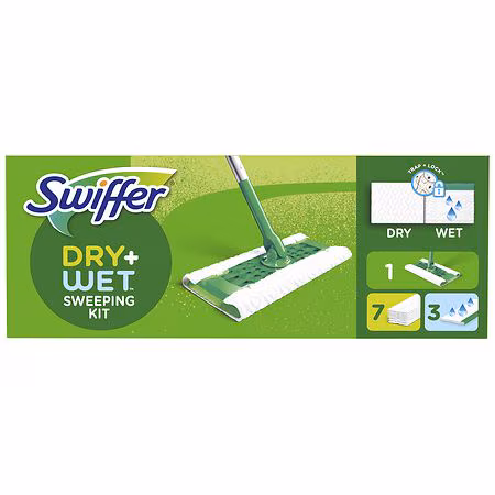 Swiffer Sweeper is a 2-in-1 multi-surface hard surface floor cleaner designed for both sweeping and mopping - no dustpan or bucket required! First, use a Dry Sweeping Cloth. With deep ridges and grooves that conform to the surface of your floor, TRAP AND LOCK dirt, dust and hair. Next, use a Wet Mop...more