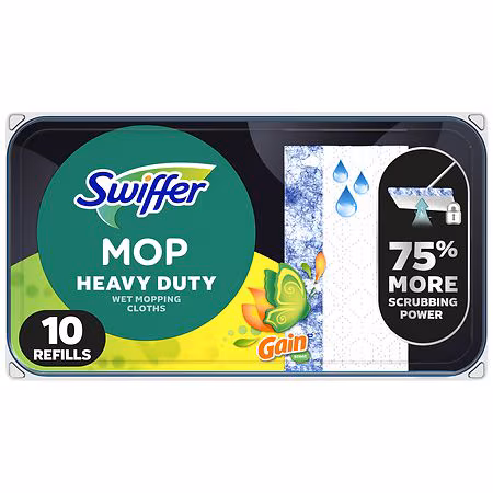 Swiffer Sweeper Heavy Duty Wet Mopping cloths now have 75% more scrubbing power* to tackle tough messes. The pads are designed for quick clean ups in small spaces, making them a perfect choice for kitchens, bathrooms, and more. Plus, they are safe to use on all finished floors**. Enjoy the Gain Orig...more