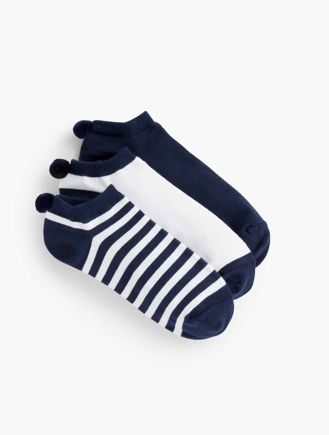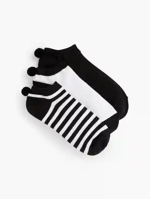 Three Pair Pom Pom Socks. Our comfortable socks. With a cute pom pom detailing. In a set of three. Features Pack of Three Imported Material: 65% Cotton, 28% Polyester, 3% Spandex, 4% Other Fiber (exclusive of decoration) Care: Machine wash cold, gentle cycle; only non-chlorine bleach when needed; tu...more
